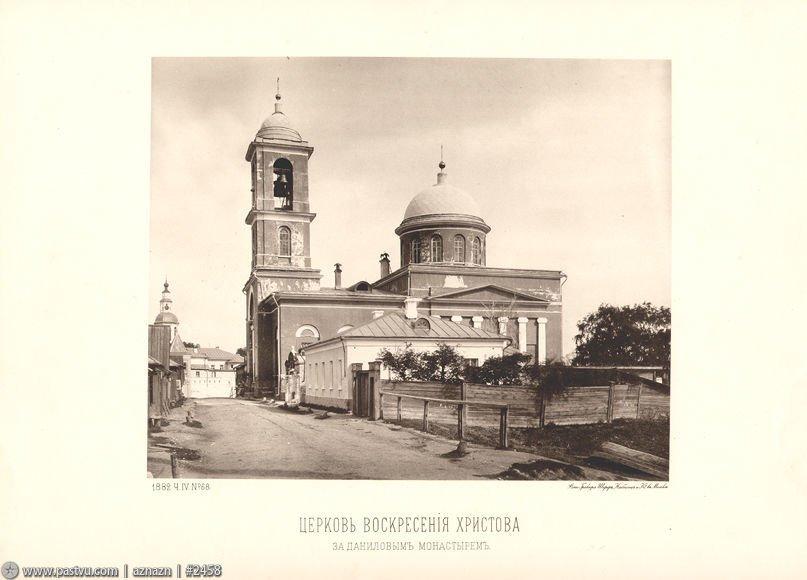 Около 1282 года на месте сегодняшней Воскресенской церкви по указу первого московского князя Даниила Александровича был основан монастырь в честь святого Даниила Столпника. В 1330 году обитель переехала на новое место: князь Иван Калита предпочёл перевести её непосредственно в Кремль, к церкви Спаса на Бору, чтобы создать «комнатный» монастырь рядом со своим дворцом (впоследствии Иван III переведёт новый монастырь в Крутицы – так появится существующий сегодня Новоспасский монастырь). Старое место Даниловского монастыря пришло в упадок и долгое время находилось в запустении. При царе Иване Грозном в 1560 году обитель была восстановлена, но севернее прежнего места, по другую сторону оврага – там и сегодня находится Даниловский монастырь.