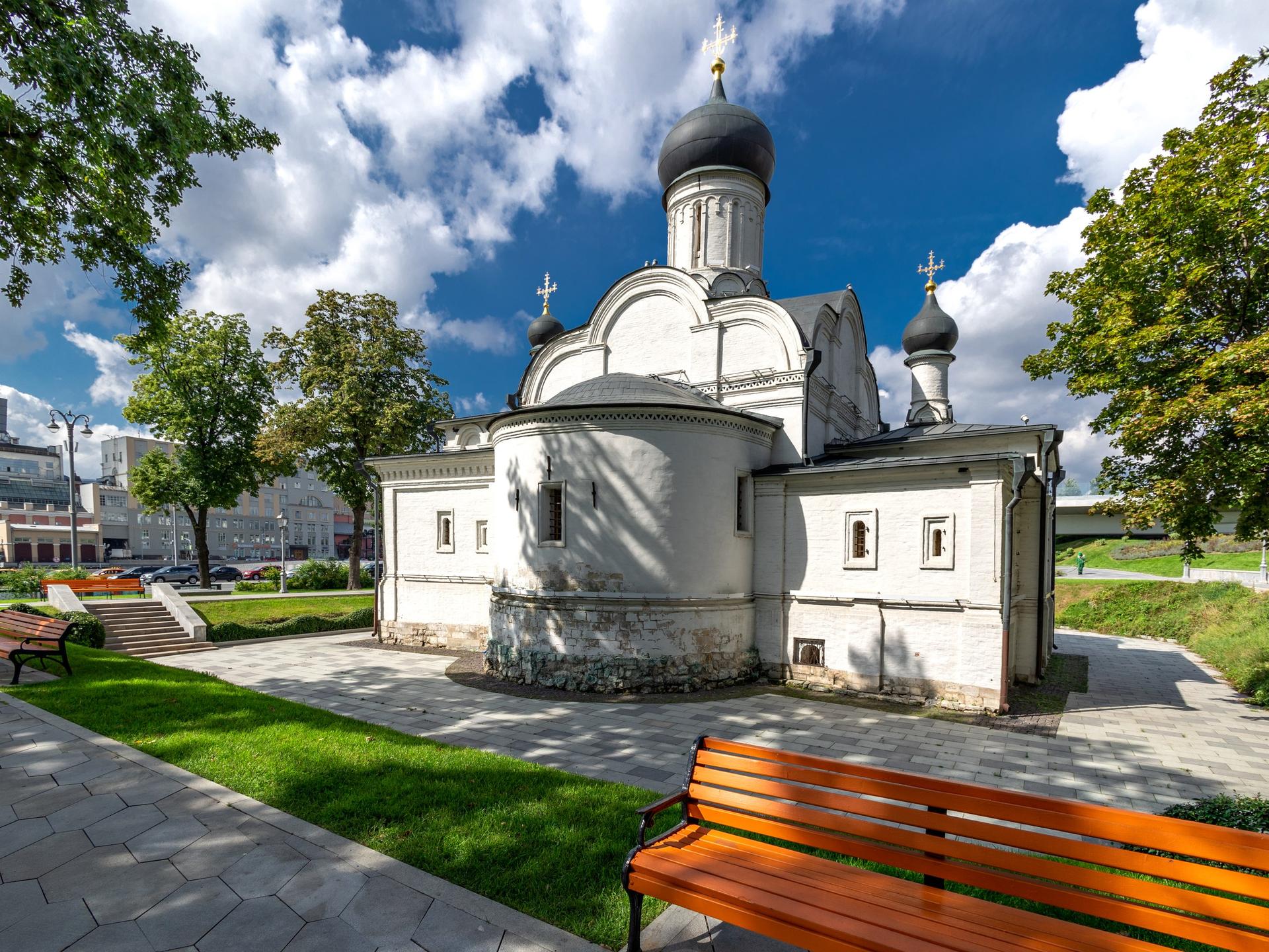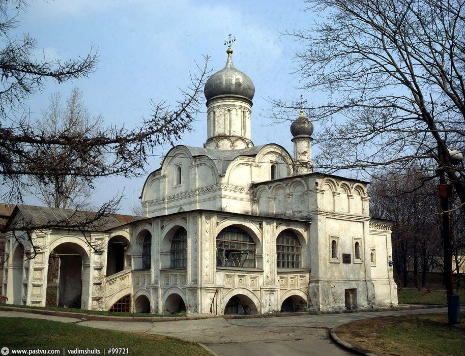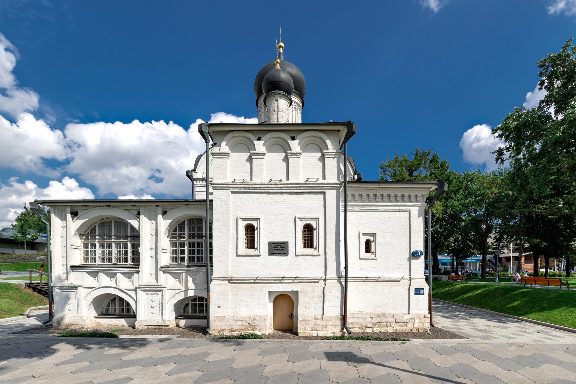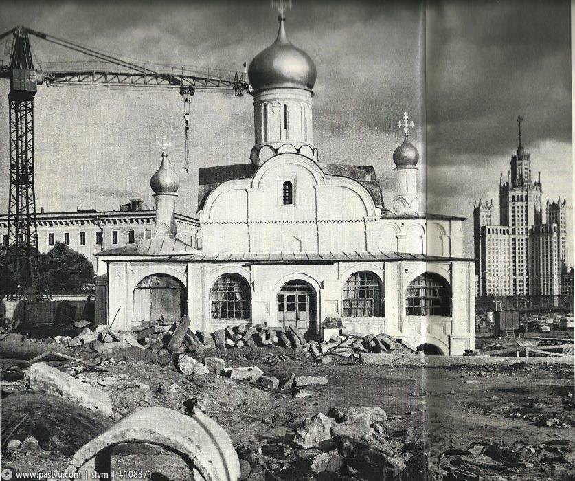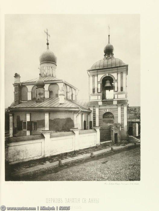 Принято считать, что церковь Зачатия праведной Анны, что в углу, в Зарядье, построена не ранее 1547 года из белого камня с кирпичными сводами. Время основания церкви на этом месте нам не известно, первое письменное упоминание деревянного храма относится к 1493 году, когда сгорела старая деревянная церковь. Сегодня храм стоит на Москворецкой набережной, 3. До 1930-х годов, то есть до сноса стен Китай-города, адрес храма был другой. Церковь тогда находилась в небольшом квартале, занимавшем угол китайгородской стены. У храма сходились два переулка, на север шёл Кривой, а по оси западного фасада к храму подходил Мокринский. Мокринский переулок сейчас не существует, но с XII до конца XV века это была главная улица Москвы. Она так и называлась - Великая улица. Улица шла от ворот Кремля до Зачатьевской церкви, параллельно реке и вела к москворецким пристаням, находившимся поблизости.