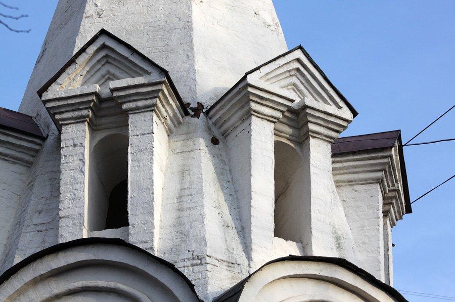 Пострадав в 1812 году от огня, церковь изменила свой внешний облик: вместо пяти глав появился купол с одной небольшой главкой, окна утратили старую обработку и изначальный декор, переложены алтарные апсиды. Колокольня при этом осталась без изменений. Приделы были расширены в 1865‑1873 годах и вынесены на одну линию с главным алтарем.