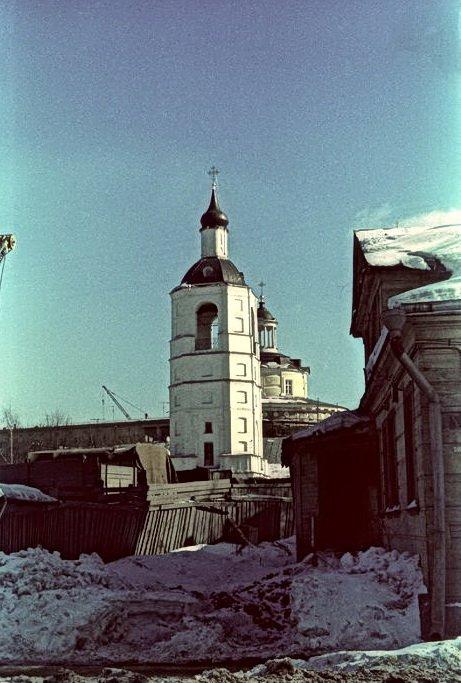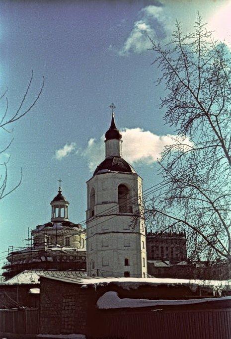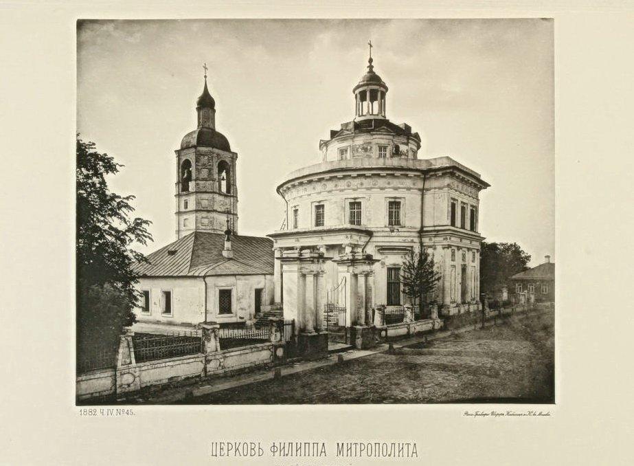 В июле 1652 г. мощи митрополита Филиппа были привезены из Соловецкого монастыря, где он погиб, в Москву для общецерковного прославления в Успенском соборе. Во главе процессии находился митрополит Новгородский Никон, в том же месяце ставший патриархом. В Мещанской слободе мощи были встречены крестным ходом с участием царя и духовенства. На этом месте поначалу была установлена часовня с памятным крестом, а в 1677 г. поставлена деревянная церковь во имя святителя Филиппа. В 1691 г. она была заменена каменным зданием в стиле "барокко". Но и эта постройка со временем обветшала, грозя обрушиться. Митрополиту Московский Платон дал разрешение на возведение нового здания. Работы продолжались в течение 1777–1788 гг. Трапезная и колокольня остались от 1750–1752 гг.