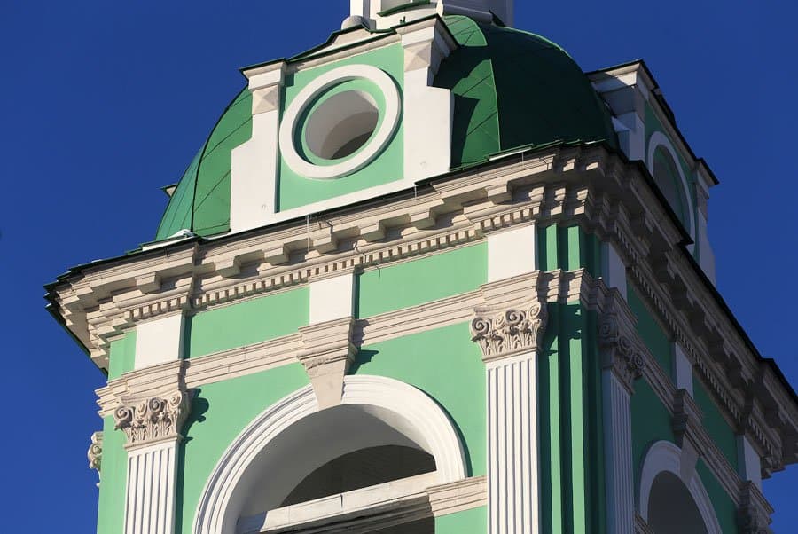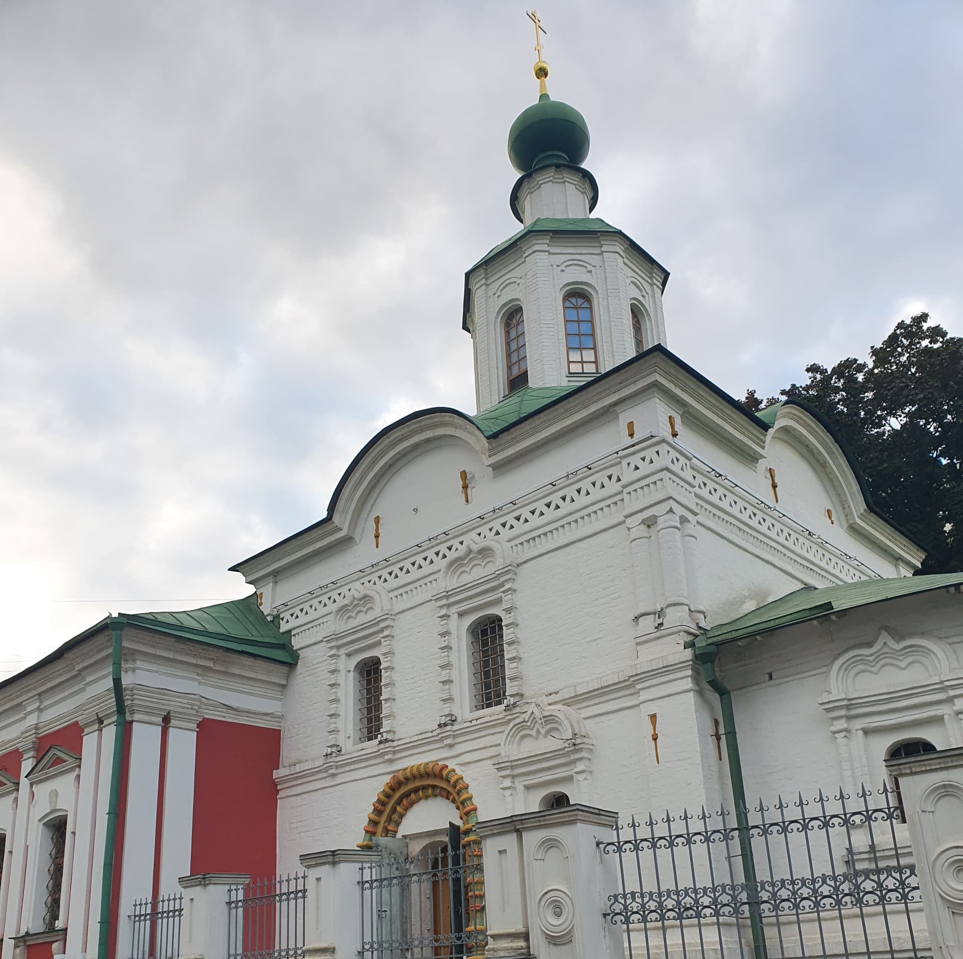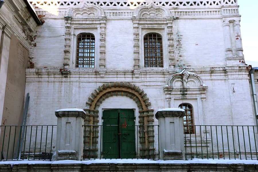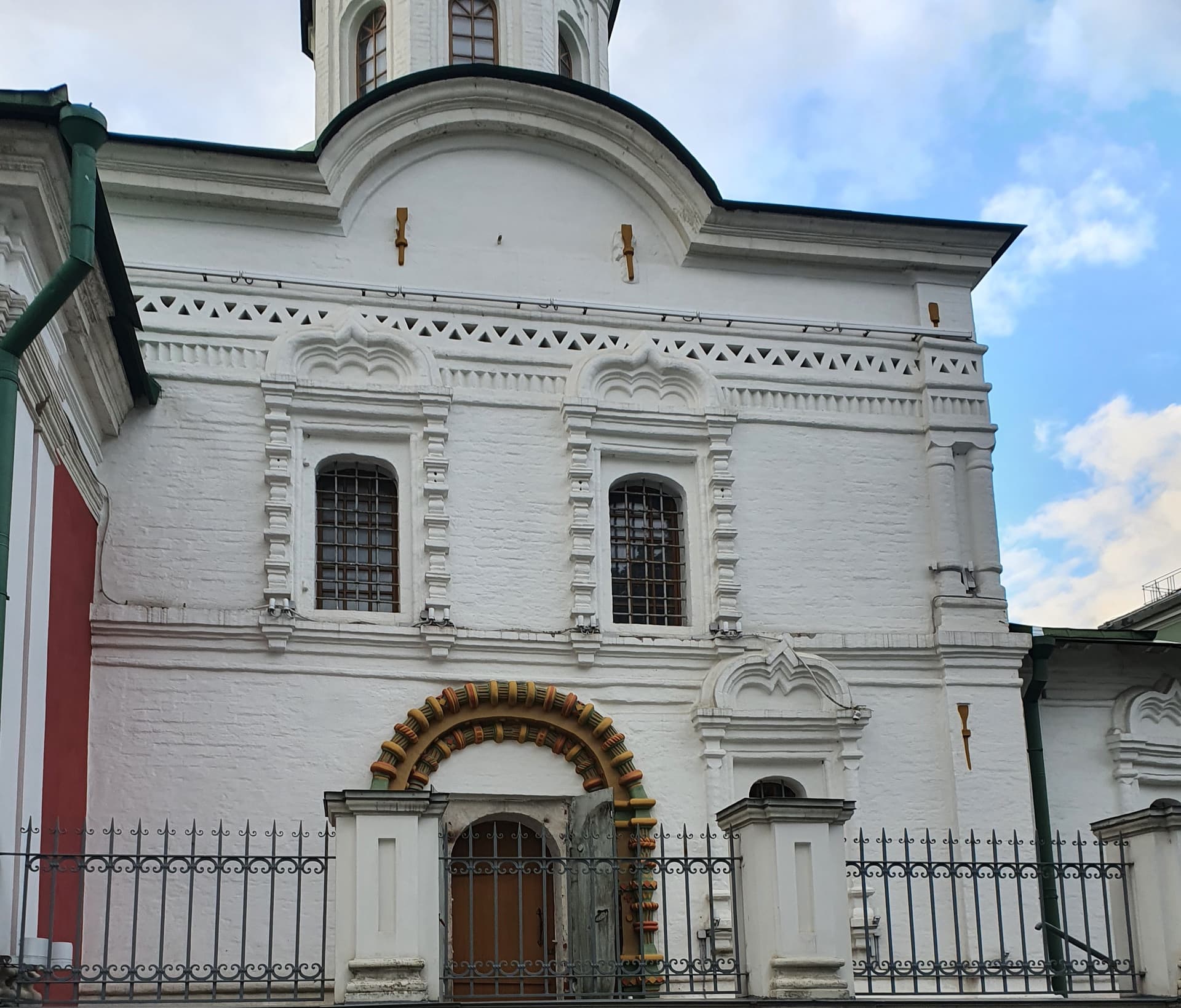 На чётной стороне Пятницкой улицы видна главная вертикальная доминанта начала – колокольня храма Усекновения Главы Иоанна Предтечи, что под Бором. К ней примыкает небольшой трехэтажный дом XIX века – дом причта храма Иоанна Предтечи. В доме причта проживали дьяконы, чтецы, пономари, псаломщики и другие служители церкви.