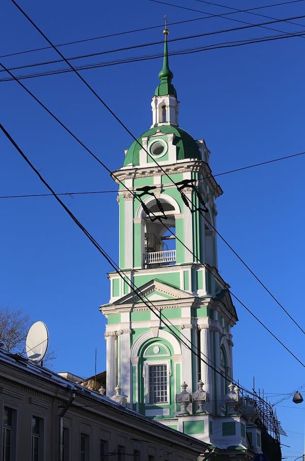От колокольни хорошо просматривается Черниговский переулок, в перспективе которого виднеется ещё один храм, построенный здесь в первой половине XVII века, - Михаила и Федора Черниговских Чудотворцев. По этой церкви и дано было название самому переулку. По преданию, возле храма Иоанна Предтечи, что под Бором, в 70-е годы XVI века были обретены мощи святого князя Михаила Черниговского и боярина его Федора, убитых в 1246 году при Орде. Поэтому именно здесь впоследствии был возведен деревянный храм, а в 1695 году на средства купчихи И.И. Малютиной он был перестроен в камне. После революции храм был закрыт, на какое-то время он был отдан баптистам, а потом там долгое время располагался склад. Сейчас же все храмы действуют и ждут своих прихожан.