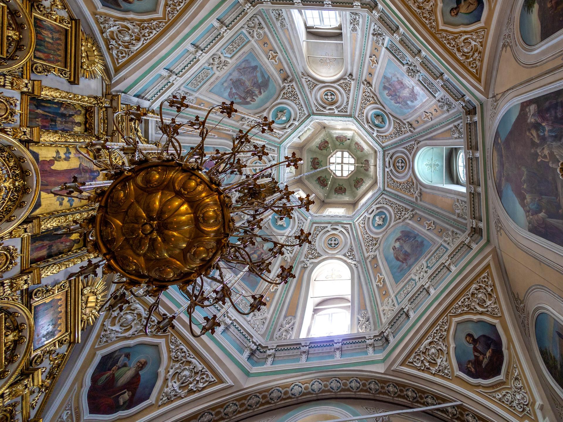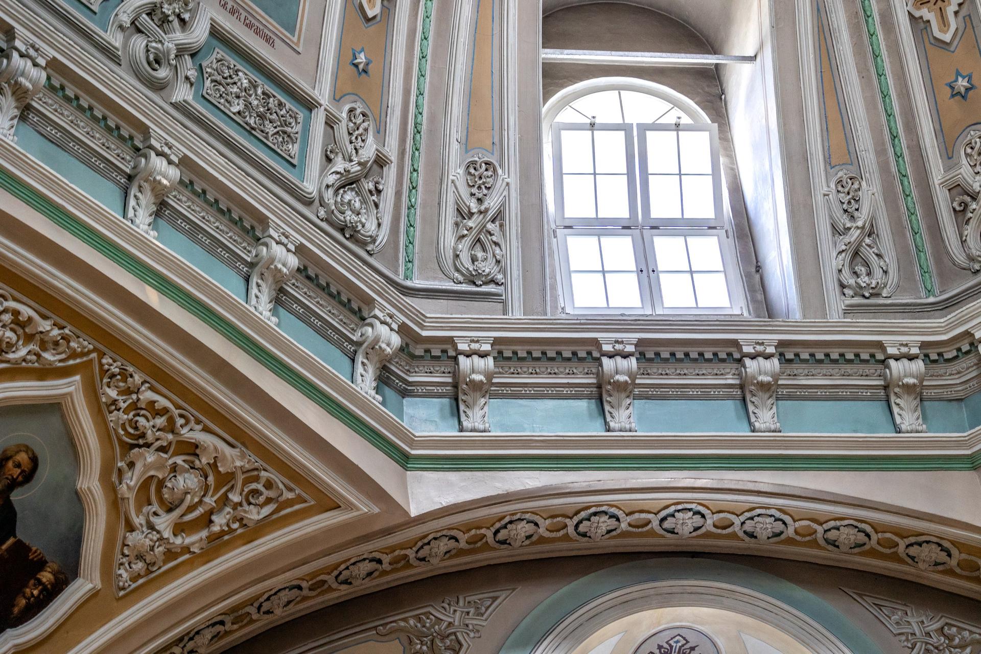 Венчает храм купол, поставленный на характерный для барокко восьмигранный барабан. Нарядность церкви придает раскраска куполов в виде квадратов красного, желтого и зеленого цветов. Прием, получивший название «в шахмат».
