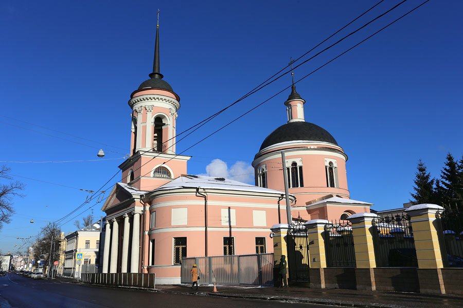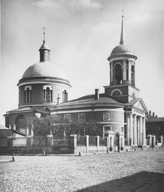 Деревянная церковь на этом месте впервые упомянута в документах в 1625 году с другим посвящением – во имя святого Георгия Победоносца. Прибавление «на Всполье» обозначает древнее расположение храма возле поля, на окраине города – граница Москвы в то время проходила по траектории Садового кольца. На смену деревянному зданию в 1673 году пришла каменная постройка, созданная на средства купца Семена Потапова и получившая придел Иоанна Воина. Здание представляло собой традиционный московский храм конца XVII века, увенчанный пятиглавием, с шатровой колокольней. Однако по прошествии более ста лет церковь обветшала и была полностью разобрана для нового строительства. Храмоздателем выступил местный житель, капитан И.И. Савинов, живший напротив церкви. Работы продолжались с 1798 по 1802 год.