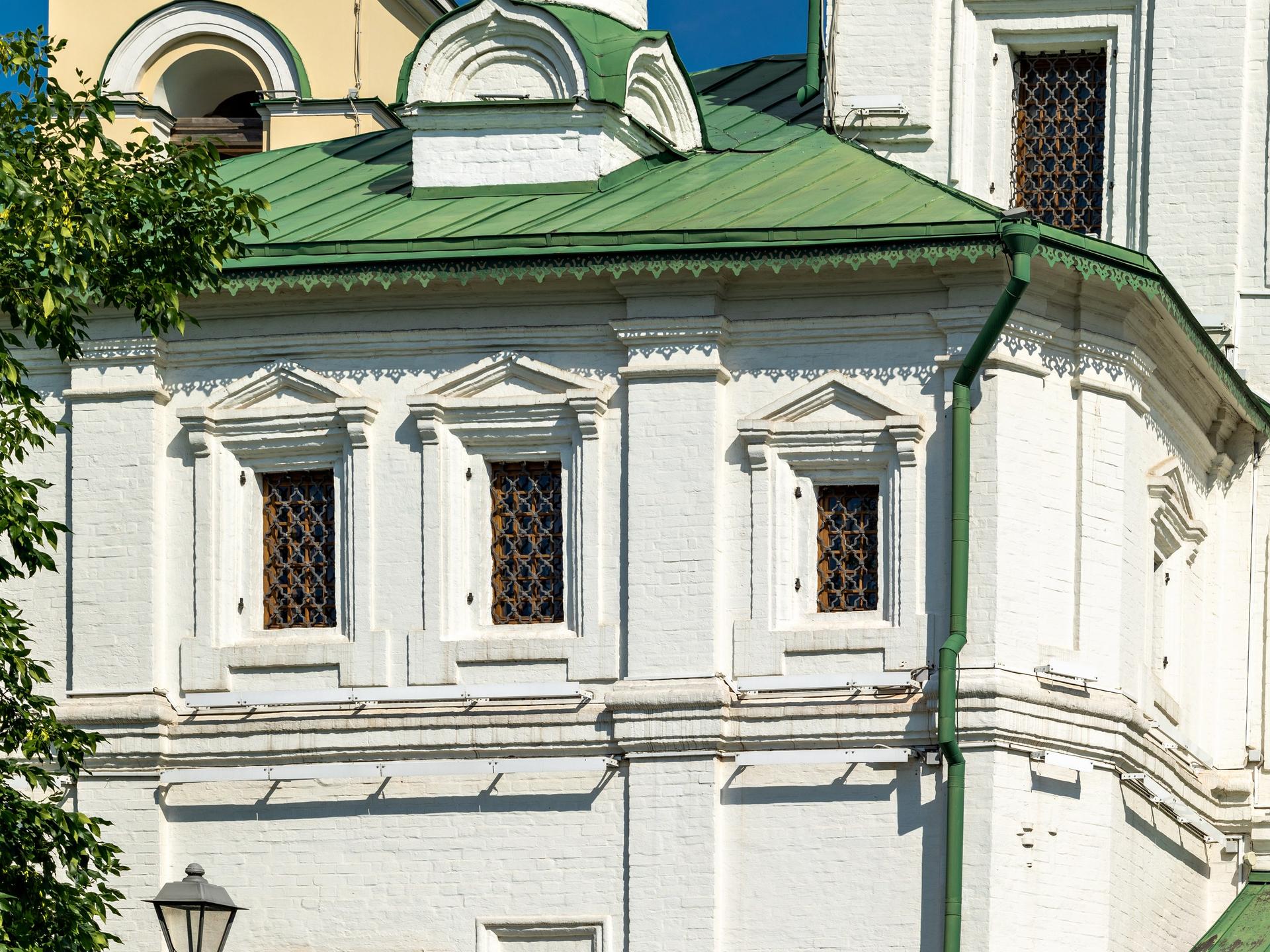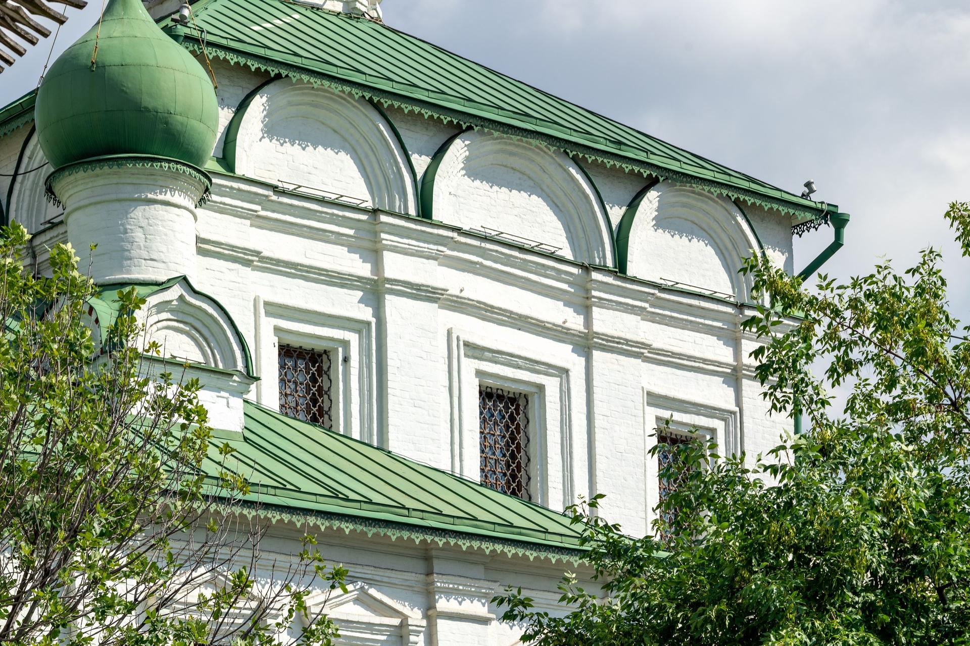 После пожара 1737 года храм был подновлен в стиле барокко, характерном для архитектуры Москвы того времени. Об этом мы можем судить по старой фотографии начала XX века, на которой виден граненый барабан и восьмигранный свод – характерные признаки барокко. Ребра барабана оформлены лопатками полуквадратной формы. Барабан имеет световые окна и заканчивается главкой луковичной формы. Окна верхнего яруса «растесаны» под больший, по сравнению с нижними окнами размер. В храме и трапезной сохранились фрагменты росписи ХVIII века. Имевшие место росписи в закомарах не сохранились. Почти квадратная на всю ширину храма апсида имеет необычную форму. Восстановленный рисунок каменных оконных наличников слабо напоминает богатые наличники XVII века из наборных колонок. В 1812 году, во время нашествия наполеоновских войск на Москву, здание незначительно пострадало - службы в храме не прекращались, а известно, что в сильно разрушенных и оскверненных церквях служить запрещалось.
