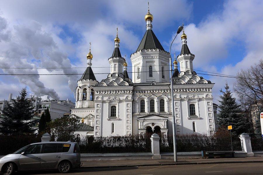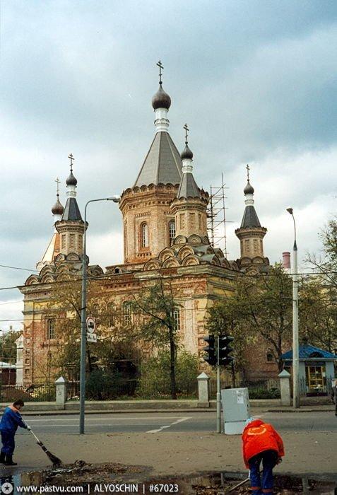 Большая пятишатровая церковь была построена архитекторами А.Ф. Мейснером и А.А. Никифоровым в 1894—1897 гг. как главный храм Клинического городка Московского университета на Девичьем поле. Дарителем храма был заслуженный профессор университета А.М. Макеев, возглавлявший Акушерскую клинику.