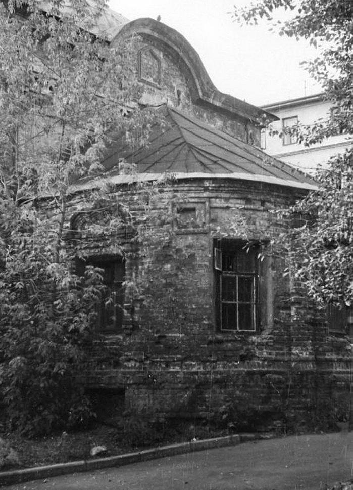 Сам по себе храм Усекновения был перестроен в конце XVII в., а подворье подверглось коренной реконструкции уже в следующем столетии. В конце 1750-х гг. на средства купцов Замятиных к церкви была пристроена трапезная, занявшая, в том числе, и площадку старой колокольни. В это же время начато строительство новой колокольни выходящей на Пятницкую улицу. Был построен только первый ярус, строительство было остановлено, потому что заказчик умер. И возобновлено только к 1780 году, когда у прихода появились деньги. Она умышленно возводилась на некотором удалении от храма – зато на красной линии магистральной Пятницкой улицы. Таким способом приход храма «что под Бором» добился, что церковь, спрятавшуюся в переулке, невозможно было не заметить при въезде и выезде из центра города.