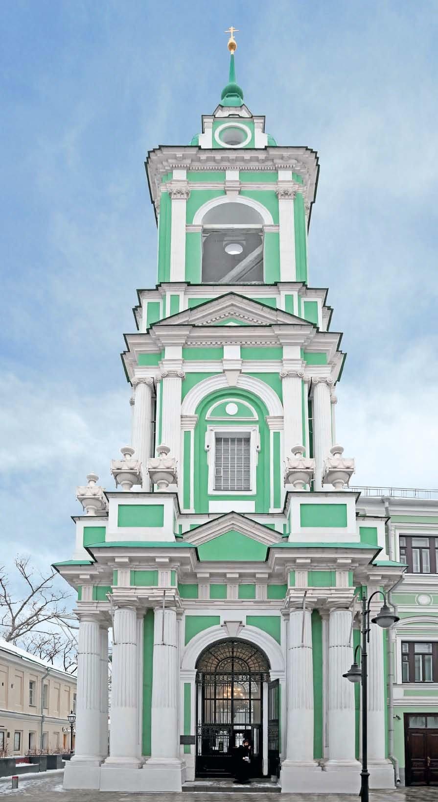 Величественная колокольня церкви Усекновения главы Иоанна Предтечи, что под Бором, формирует панораму центральной части Пятницкой улицы и доминирует над этой частью Замоскворечья. Здание имеет три яруса. Колонны нижнего яруса дорические, средний ярус оформлен ионическими, а в оформлении верхнего применены колонны самого пышного, коринфского ордера. В двух нижних ярусах – торжественные фронтоны, а третий ярус завершается башенкой с высоким шпилем.
