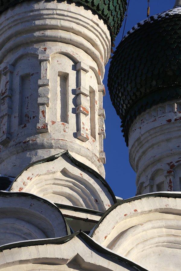Реставраторы не обошли стороной и фасады. Были восстановлены белокаменные крыльца входов, цоколь, а также деревянное перекрытие притвора. Окна были заменены на изготовленные по историческим чертежам дубовые.