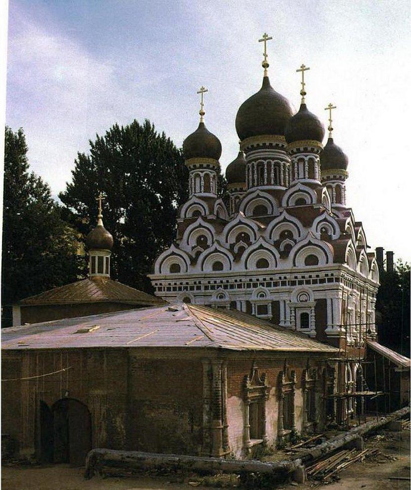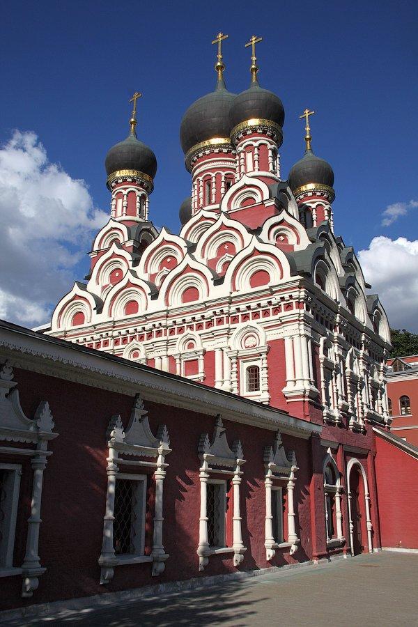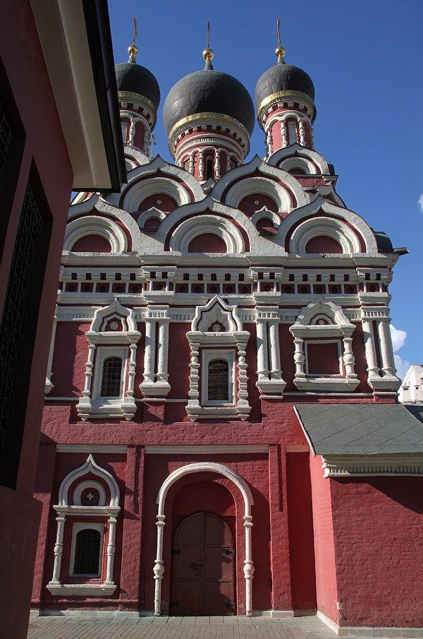 Церковь выстроена в традициях русского узорочья середины XVII века: фасады её главной части обильно декорированы окнами с затейливыми наличниками разной формы – каждый из них выполнен по-своему и не повторяется. Окна трапезной и приделов оформлены в стиле московского барокко – наличники окон завершены гребешками. Традиционное пятиглавие покоится на двух рядах декоративных кокошников. Соседство с Москвой-рекой было для церкви весьма беспокойным: во время сильных паводков церковь постоянно подтапливалась. В 1786 году результатом сильного наводнения стало обрушение церковной колокольни, в несколько метрах от которой проходил засыпанный ныне Егорьевский канал, соединявший Водоотводный канал с Москвой-рекой. Новую колокольню в 1806 году построили со стороны Садовнической улицы на средства Павла Григорьевича Демидова, представителя богатейшей фамилии промышленников – владельцев уральских заводов. Последнее крупное наводнение, произошедшее в 1908 году, едва не уничтожило храм, – только неотложные работы, организованные старостой Ефимом Ермиловичем Приваловым, смогли спасти её от обрушения.