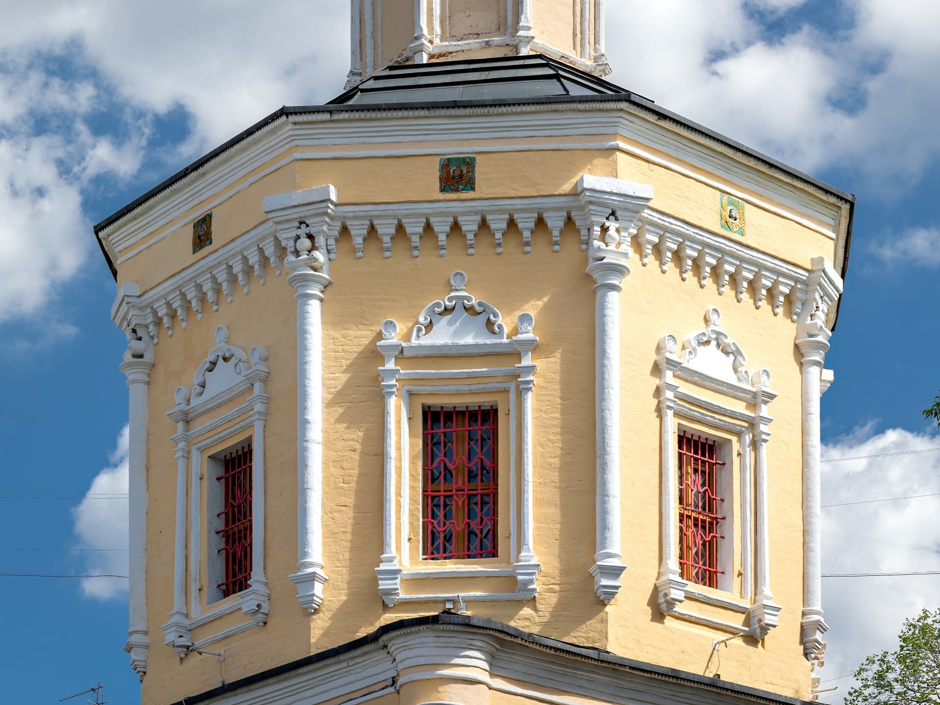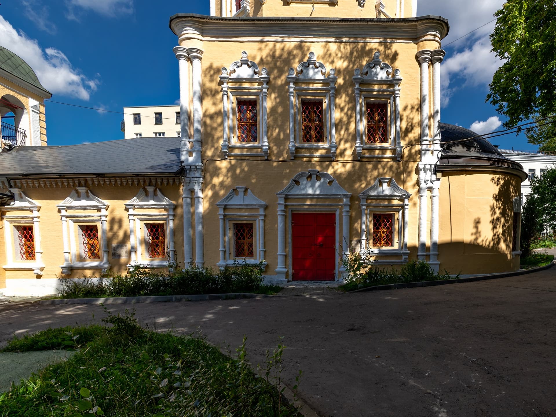 Новый храм типа восьмерик на четверике, выстроенный из большемерного кирпича с резными белокаменными деталями, являет собой характерный памятник «московского барокко». Храм увенчан кирпичной главкой на двух глухих восьмериках. Такая же главка поставлена над северным приделом. Поливные изразцы украшают верх восьмерика. Оконные проемы украшены сложными наличниками с тонко прорисованными белокаменными кокошниками.