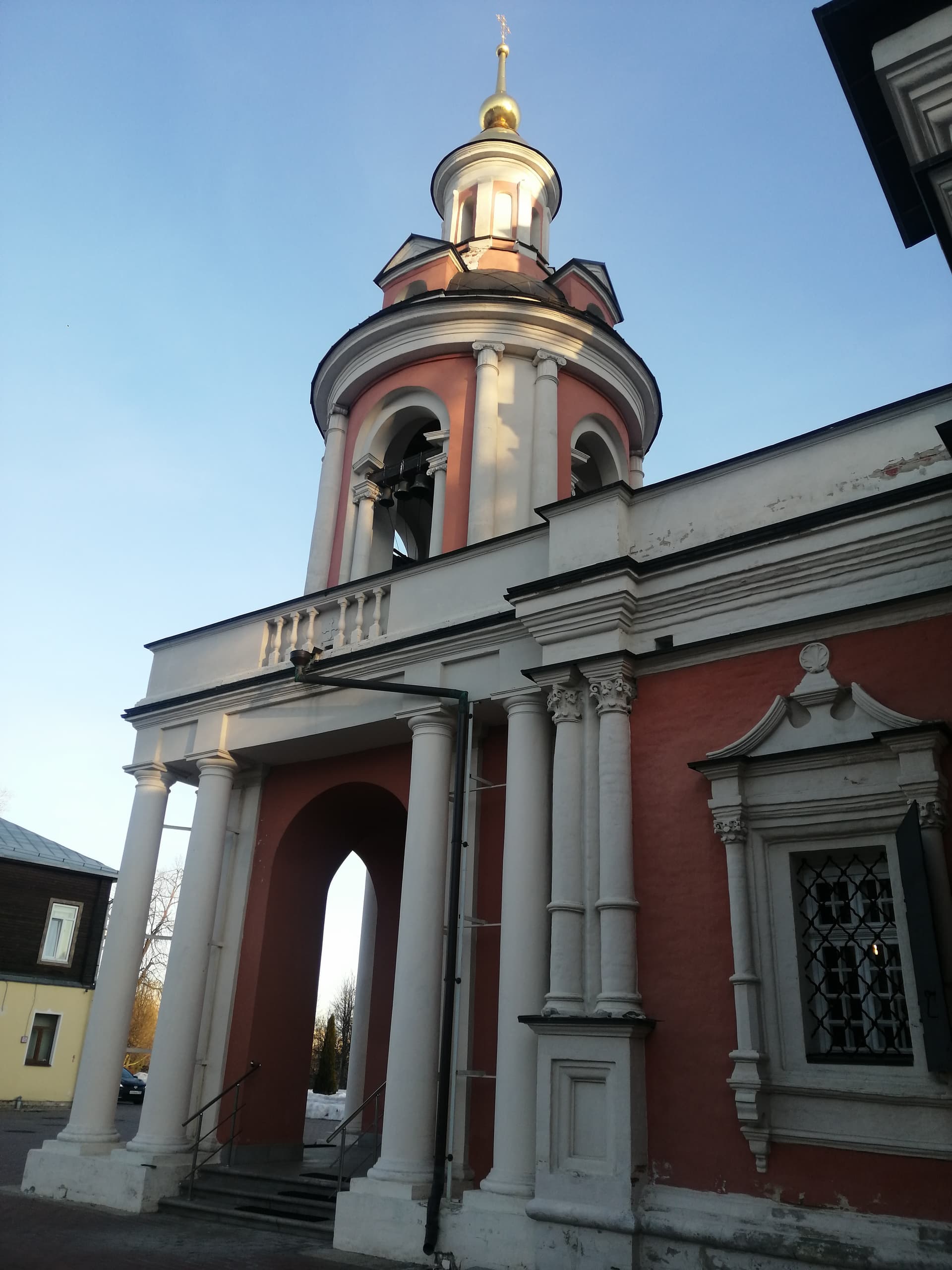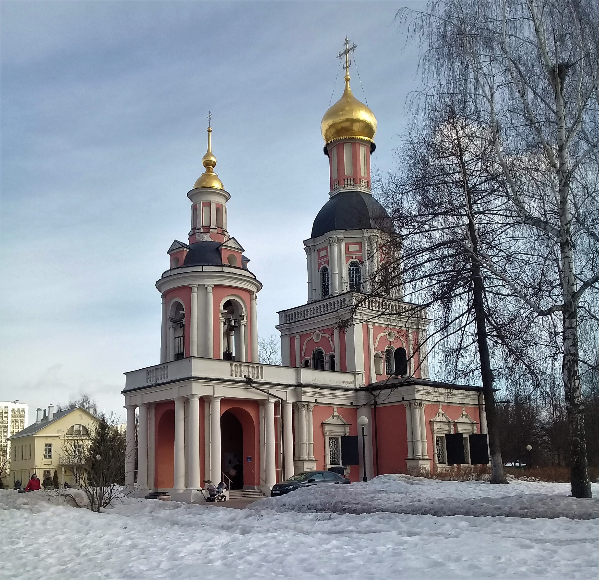 Архитектура церкви неоднородна, словно находится «на пограничье». В нижнем ярусе ещё чувствуется влияние «нарышкинского барокко» с его «разорванными фронтонами» на наличниках окон и тройными пучками колонн на углах. В то же время средний и верхний ярусы выстроены уже в стилистике «петровского барокко», более близкого к европейским мотивам. Общая вытянутость церкви по вертикали, структура «восьмерик на четверике», некоторая «геометричность» среднего и верхнего ярусов, тройные арочные окна – все это более свойственно новому направлению в церковном зодчестве. В Москве аналогом может служить Меншикова башня близ Чистых прудов. В 1709 году с севера был пристроен придел святого Георгия. Изначально колокольня существовала отдельно, но в конце XVIII века она обветшала и была разобрана, после чего с западной стороны к храму пристроили существующую колокольню, выдержанную в классическом стиле.