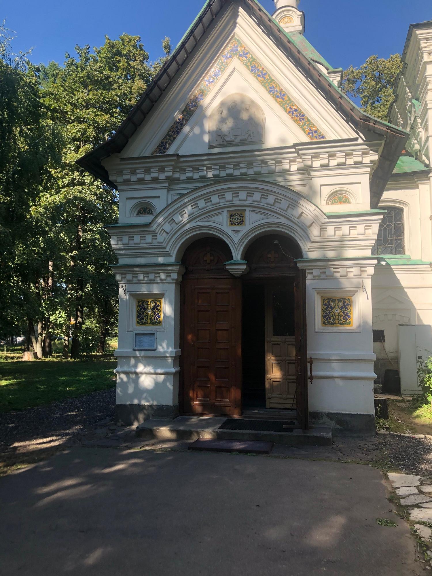 Храм создан в псевдорусском стиле и ориентируется на московское церковное зодчество XVII века. Его четверик поставлен на большой подклет и увенчан горкой кокошников с одной главой на барабане. Фасады украшены расписными изразцами. С запада к четверику примыкает колокольня с шатровым завершением, а с востока – широкая алтарная апсида, завершенная малой главкой. Интерьеры церкви создавались из итальянского мрамора и дерева разных пород, а утварь, изготовленная по эскизам профессора Д.А. Гримма, была привезена из Лугано. В подцерковье была создана фамильная усыпальница фон Дервизов, где похоронены Павел Григорьевич и его родственники.