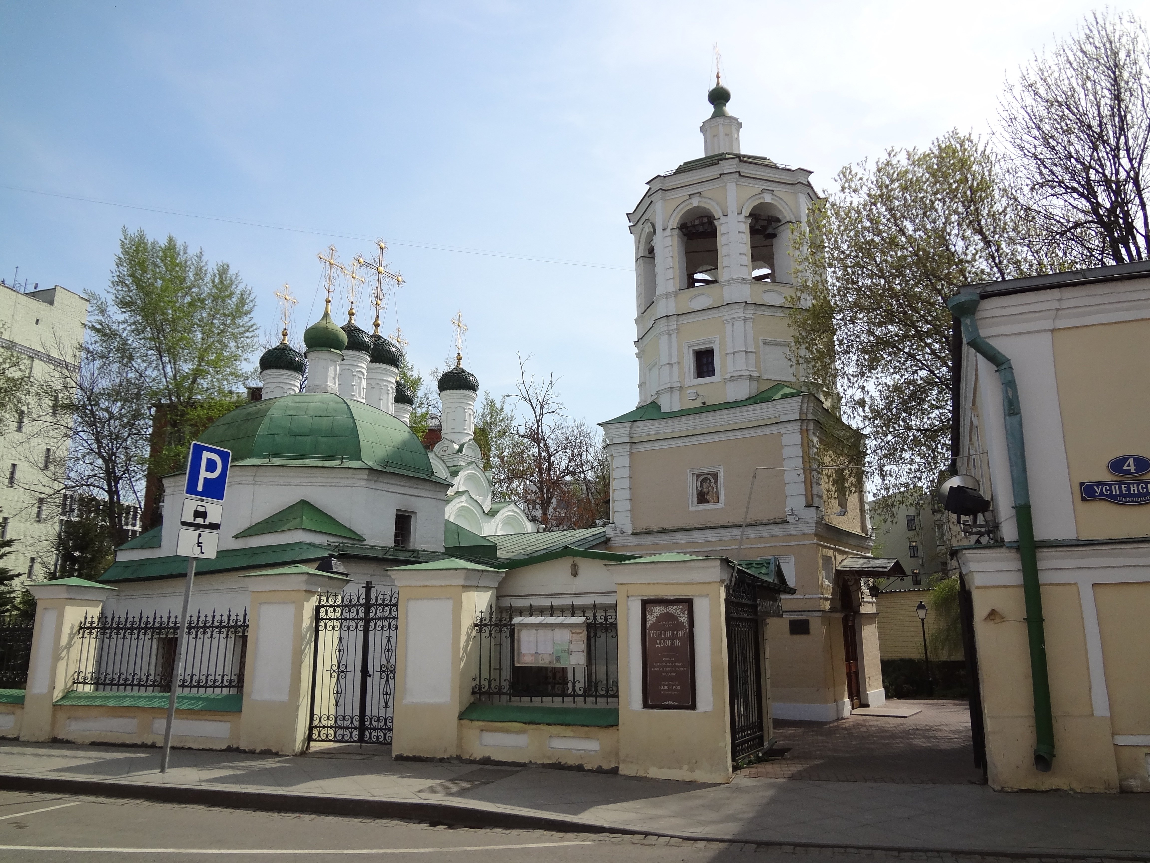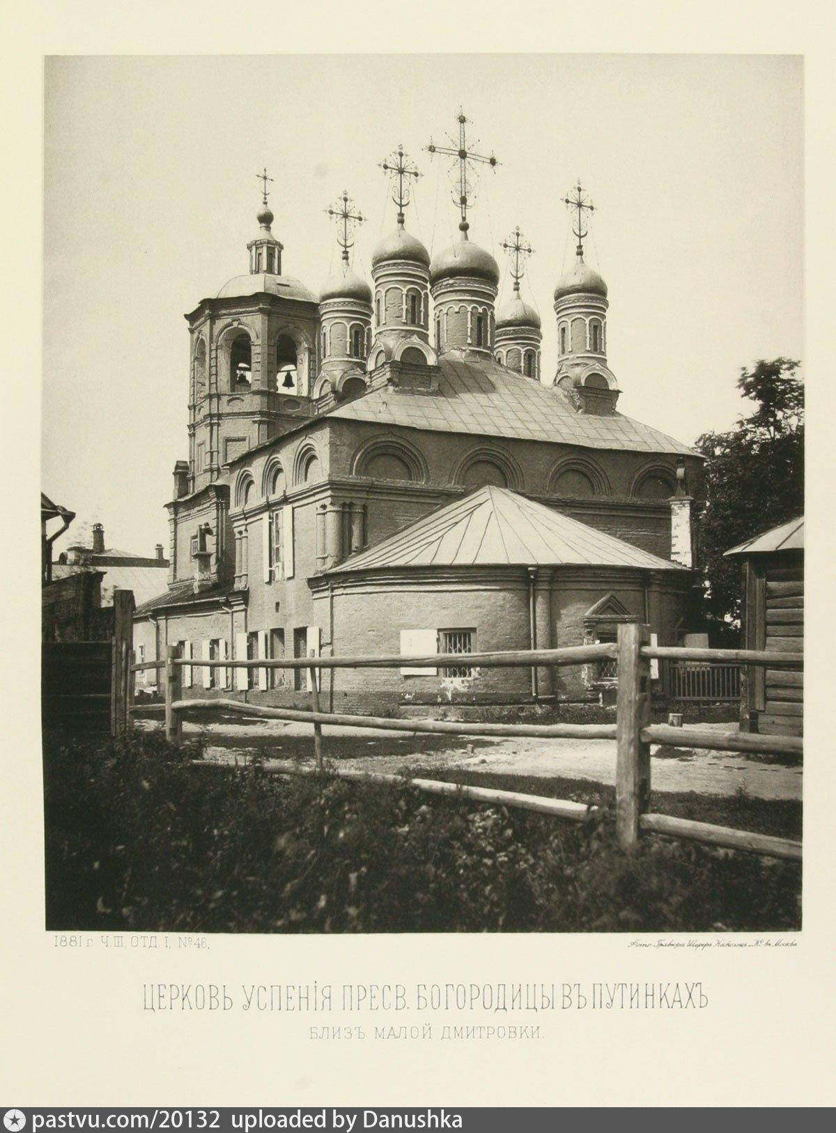 Первое упоминание о храме в этом месте датировано 1621 г. Как и многие храмы того времени он первоначально был деревянным и назывался «Успение, что на старом Посольском дворе» и «на Дмитровке за городом». Так как окраинная слобода Путинки находилась в Москве за тверскими воротами Белого города. Сейчас на этом месте Пушкинская площадь и Страстной бульвар. А тогда от стен Белого города, построенных Федором Конем, начинались два широких тракта на Тверь и на Дмитров.