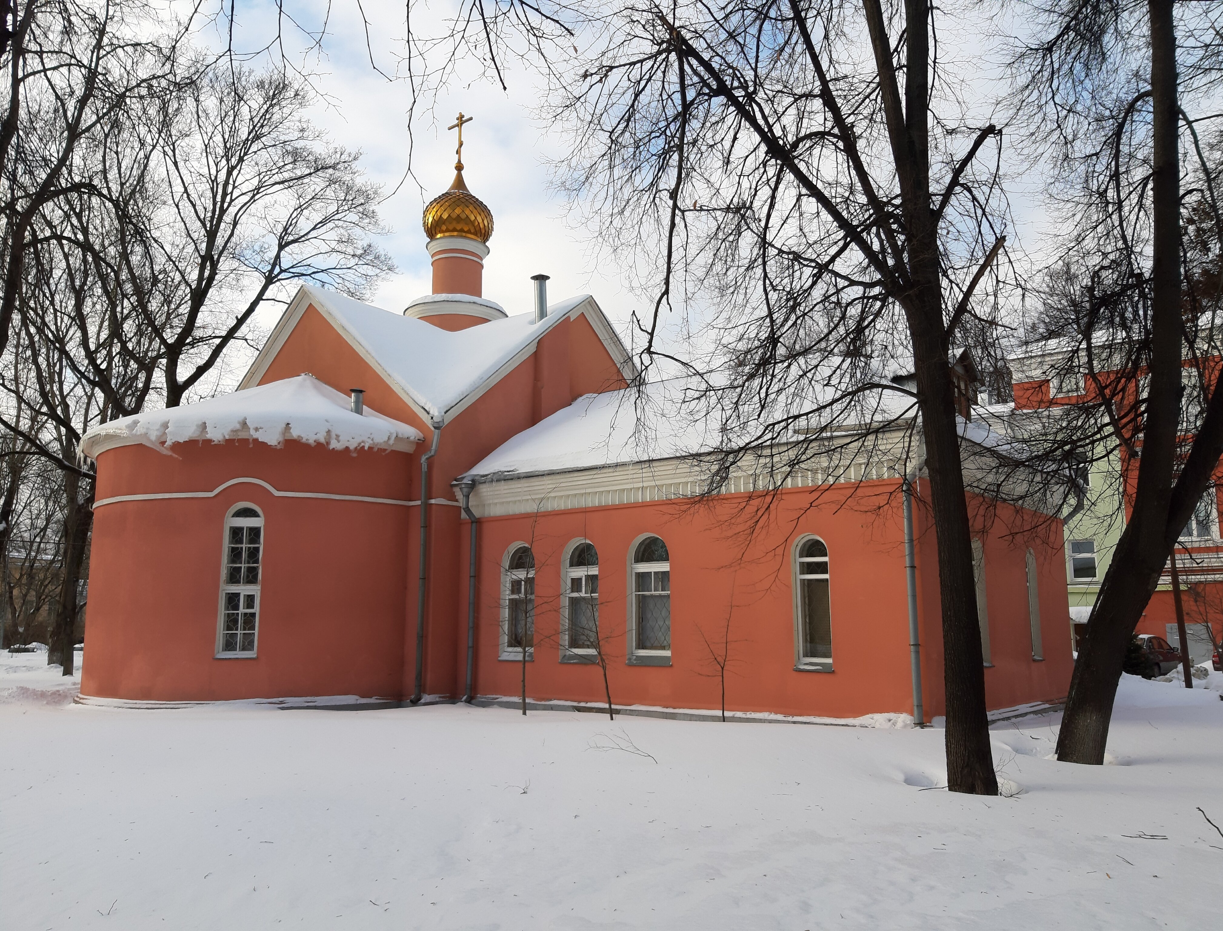 Небольшой храм на территории больницы №29 сегодня снова действует как домовая церковь для пациентов и сотрудников. Но изначально он создавался как своего рода «траурный», здесь отпевали скончавшихся в больнице при общине сестер милосердия «Утоли моя печали».