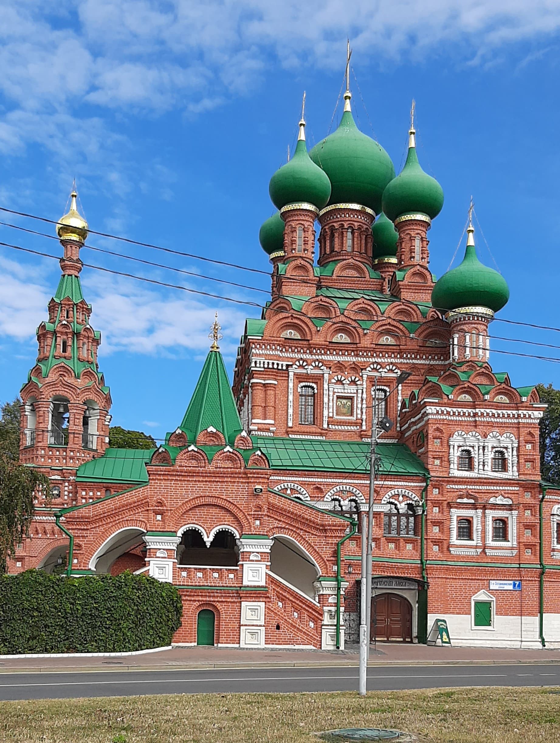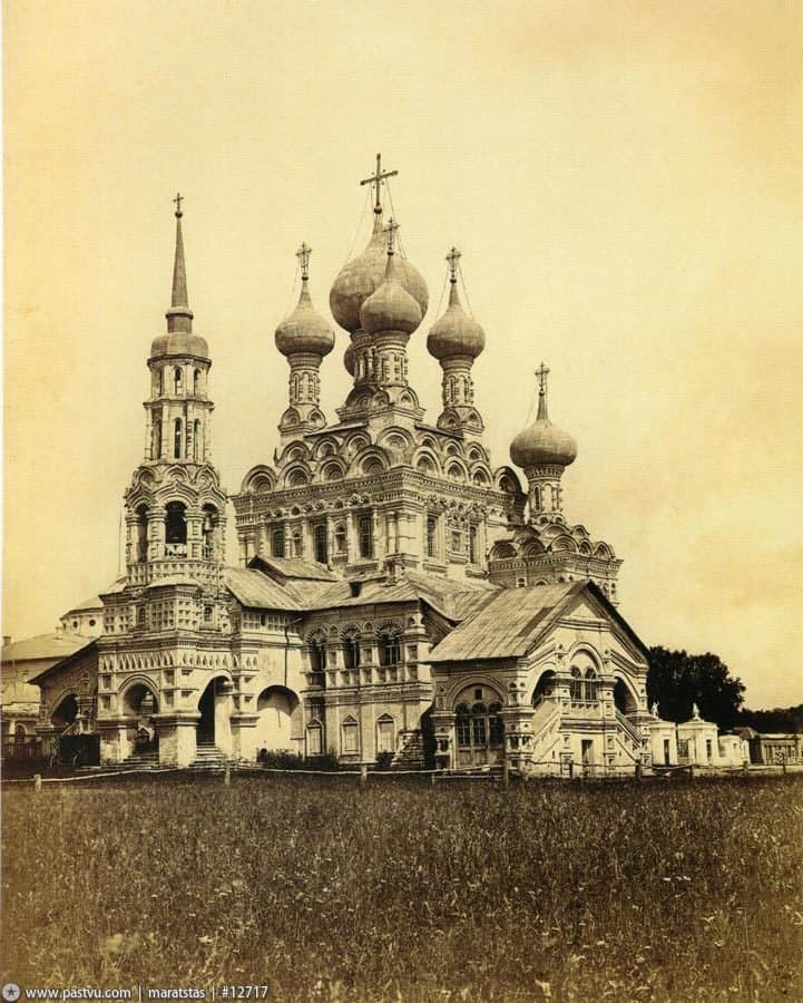 По одной из версий, зодчим церкви был крепостной П. Потехин. Троицкий храм является выдающимся памятником русской архитектуры второй половины XVII века и примером наибольшего использования узорочья и изразцов в убранстве фасадов. Структура церкви оригинальна: у нее нет трапезной, к четверику примыкает лишь коридор, на который ведет три крыльца. Приделы не только внешне выглядят как самостоятельные церкви, пристроенные к основному храму, но и внутри отделены от него стенами. В ширинки на фасадах крылец вставлены белокаменные резные детали и разноцветные глазурованные изразцы. Наличники окон богато декорированы резными деталями. Особой гордостью церкви был пышный иконостас в стилистике нарышкинского барокко.