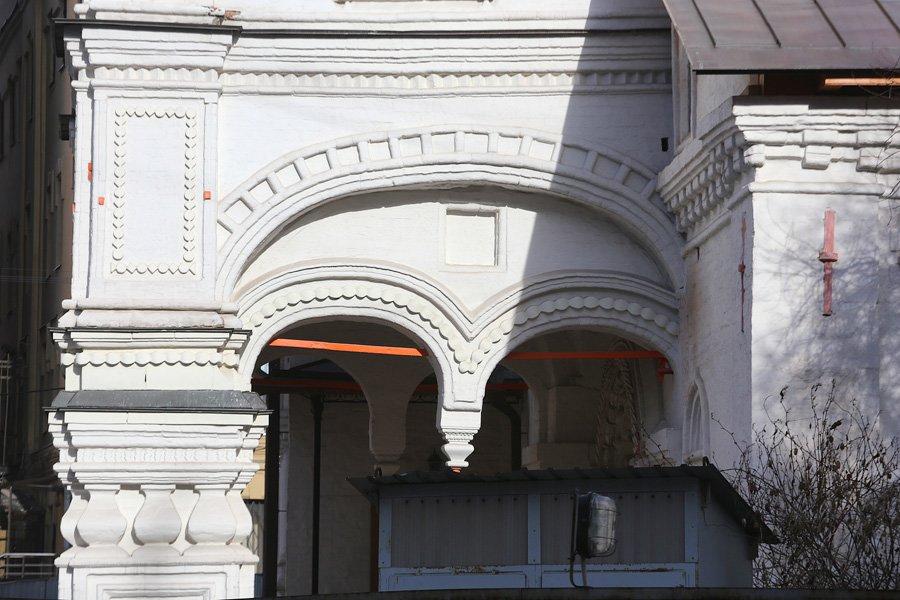 Церковь несимметрична: обособленный Климентовский придел внешне имеет форму отдельного сооружения. Редкий для Москвы случай: придел увенчан не одной, а пятью главами. Такое же пятиглавие, но несколько более крупное, завершает основной объем церкви. Второй ярус традиционной для XVII века шатровой колокольни отмечен необычной «двойной» иконой. Внутри большой иконы, изображающей двух ангелов, есть выемка, в которой находился образ Божией Матери «Знамение», утраченный в ХХ веке. Вход, расположенный под колокольней, украшен большим порталом с каменной резьбой, которая ранее была богато расписана. Не менее пышное убранство получили и окна храма с северной и южной сторон.