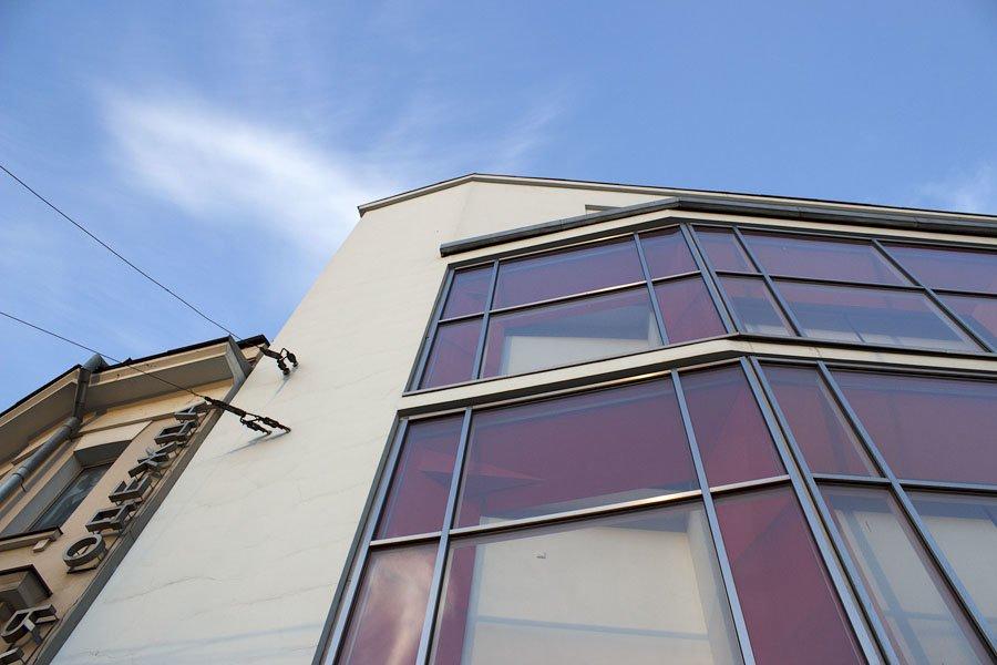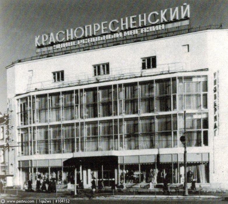 Здание универсального магазина Мосторга на Красной Пресне было возведено в 1927-1928 гг. по проекту братьев А.А., В.А. и Л.А.Весниных, признанных лидеров московского конструктивизма.