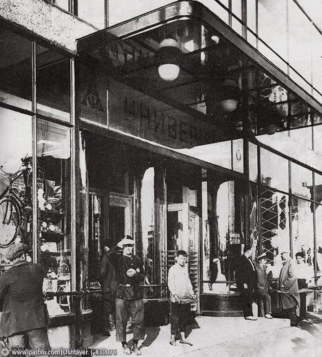 Строительство крупных универмагов стало заметным явлением в архитектуре Москвы второй половины 1920-х гг. Универмаги рассматривались как одна из форм централизации коммунально-бытового обслуживания. Кроме того, в годы нэпа универмаги должны были составить конкуренцию частной торговле – их создание давало возможность государственной и кооперативной торговле существенно уменьшить накладные расходы, а следовательно, и снизить цены на товары. Здания универмагов становятся предметом архитектурных конкурсов, их строительство нередко поручается выдающимся архитекторам.