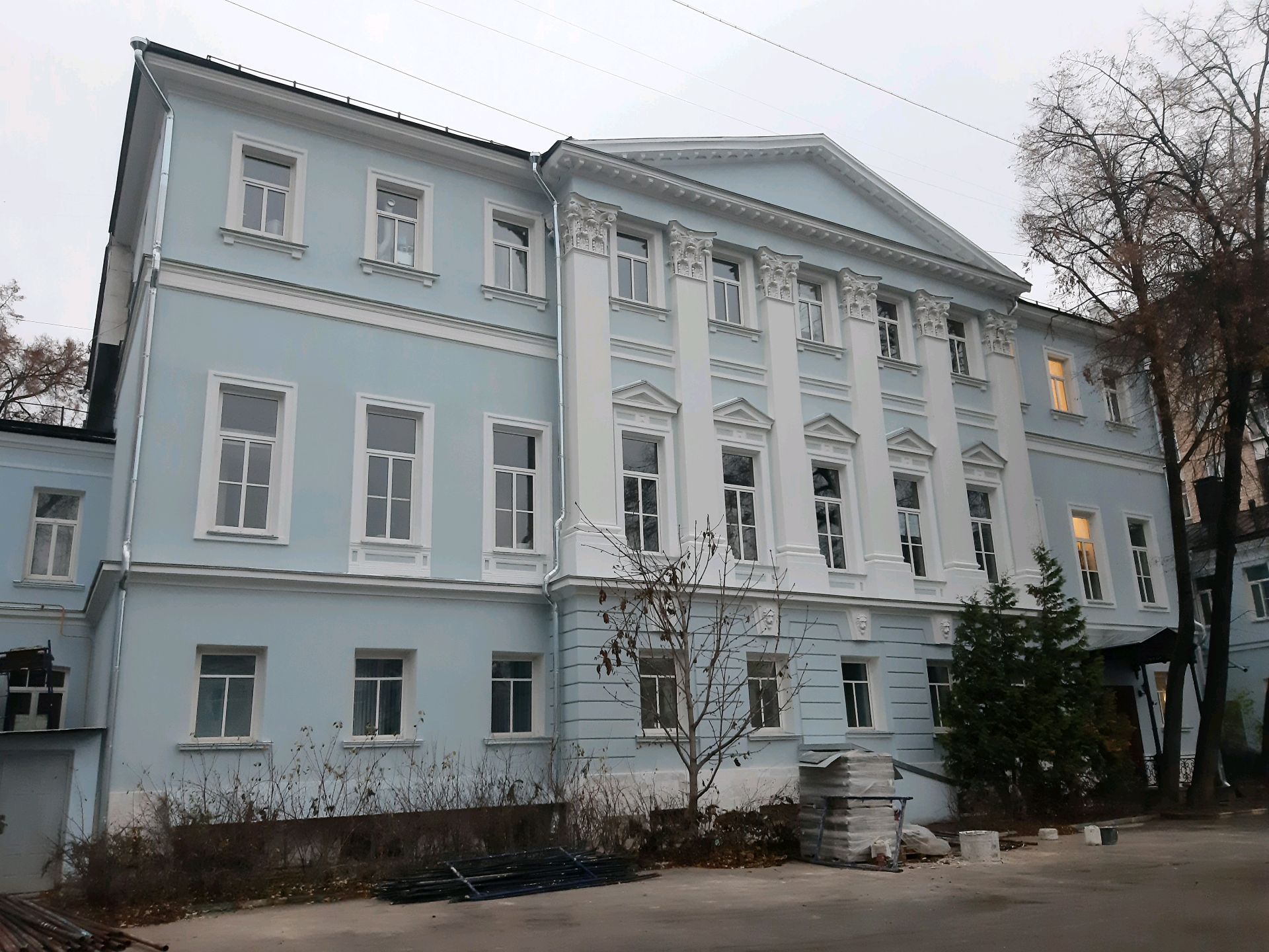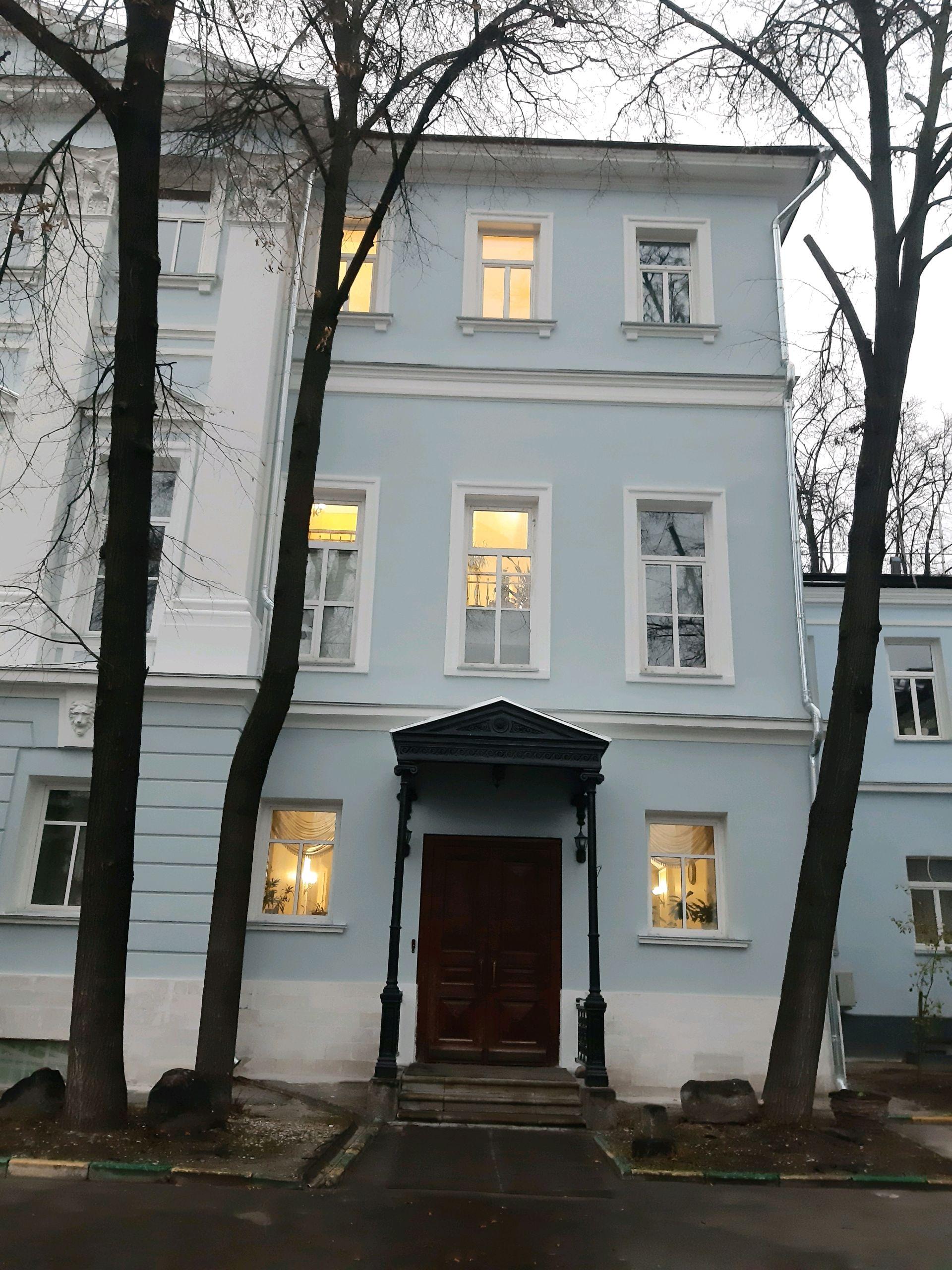 В самом конце XIX века усадьбу приобрело Московское Купеческое общество. Несколько позже, в 1907 году, особняк был частично перестроен по проекту В.В.Шервуда: продлены до красной линии Большой Алексеевской улицы флигели, дополнительным этажом надстроены боковые крылья главного дома. Внутри здания до наших дней сохранилась часть интерьеров и парадная лестница на второй этаж.