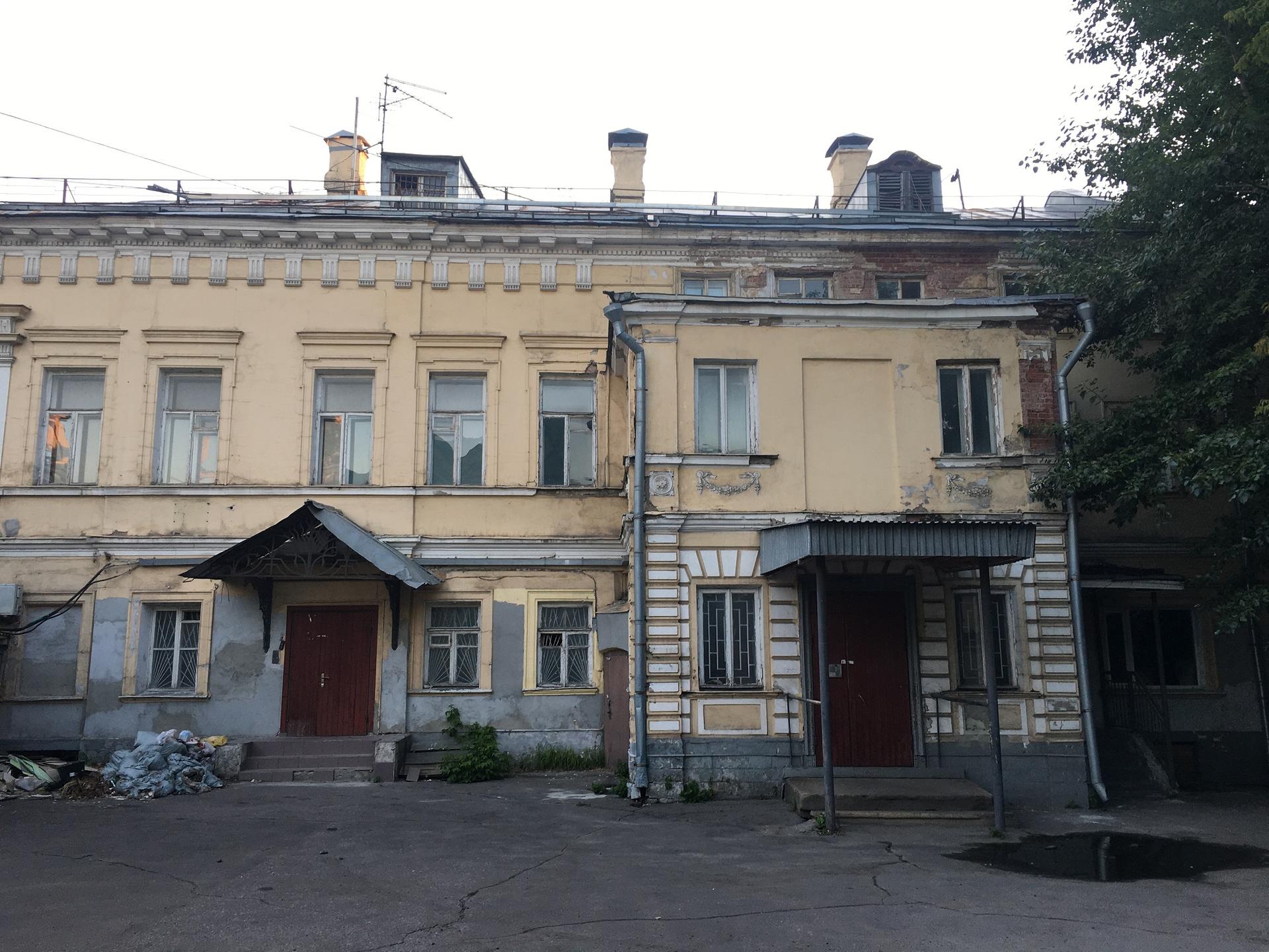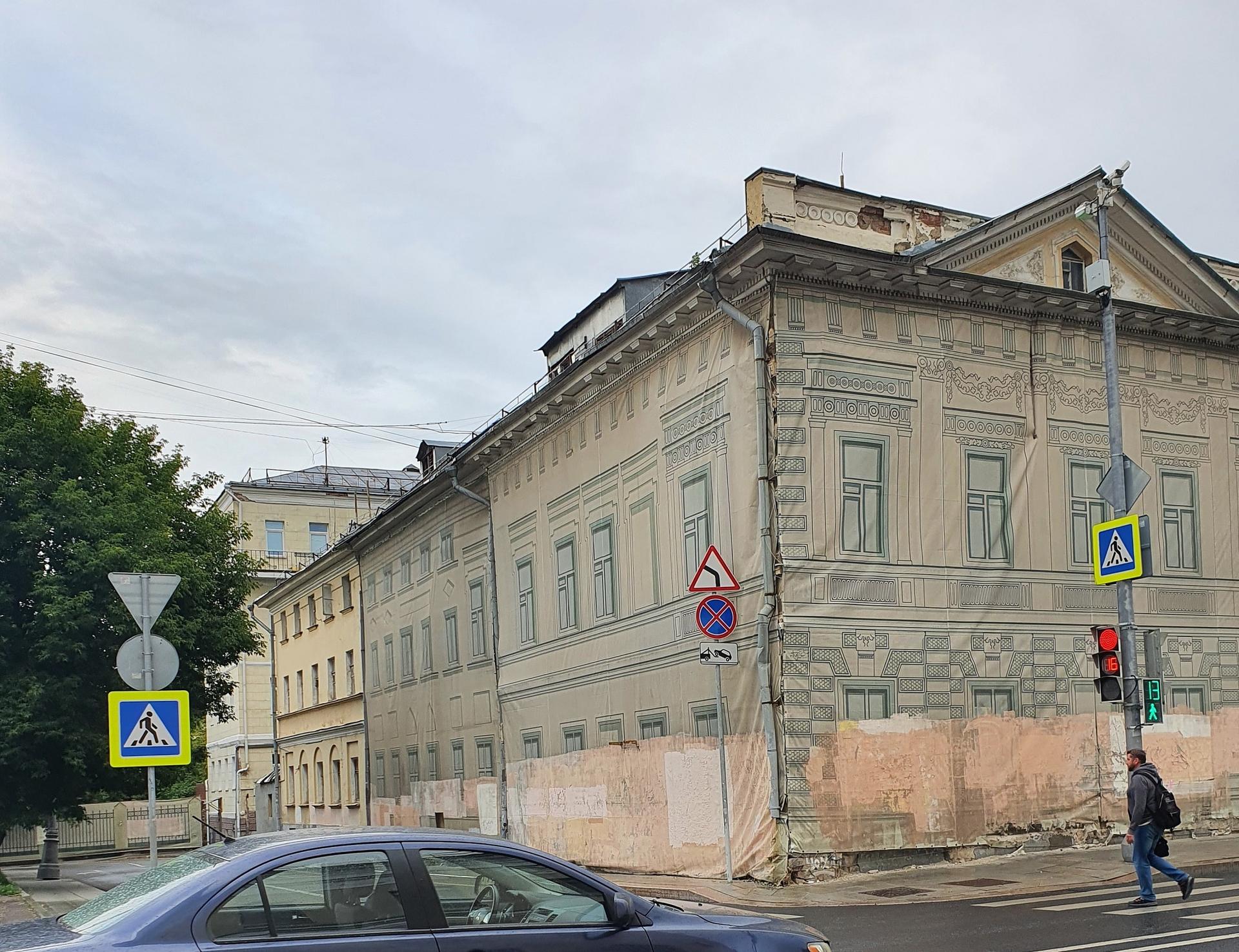Дом представляет собой характерный образец жилой застройки середины XVIII века. Он стоит торцом на улицу, что выдает его древность. Его внутренние стены крестообразно делят объем на четыре части. Первоначальная лестница в основной этаж уничтожена при постройке нового корпуса в 1837 г. Здание хорошо сохранило наружную обработку эпохи развитого «московского барокко». Парные пилястры отмечают углы здания и места примыкания внутренних стен. Характерны окна с лучковыми завершениями и барочными «ушастыми» наличниками, четко прорисованные на голубом фоне стен. При реставрации 1967 г. восстановлены характерные для эпохи шатровое покрытие и яркая, насыщенная окраска стен. На самом углу переулка в 1760-х годах было построено торцом к улице еще одно строение в три этажа. На его фасаде по переулку сохранился характерный для зрелого классицизма тонкий декор с псевдоготическими деталями. Возможно, в нем помещалась фабрика владельцев усадьбы на рубеже XVIII–XIX веков, купцов Шелапутиных. Оба дома соединены невысоким забором с воротами посередине.