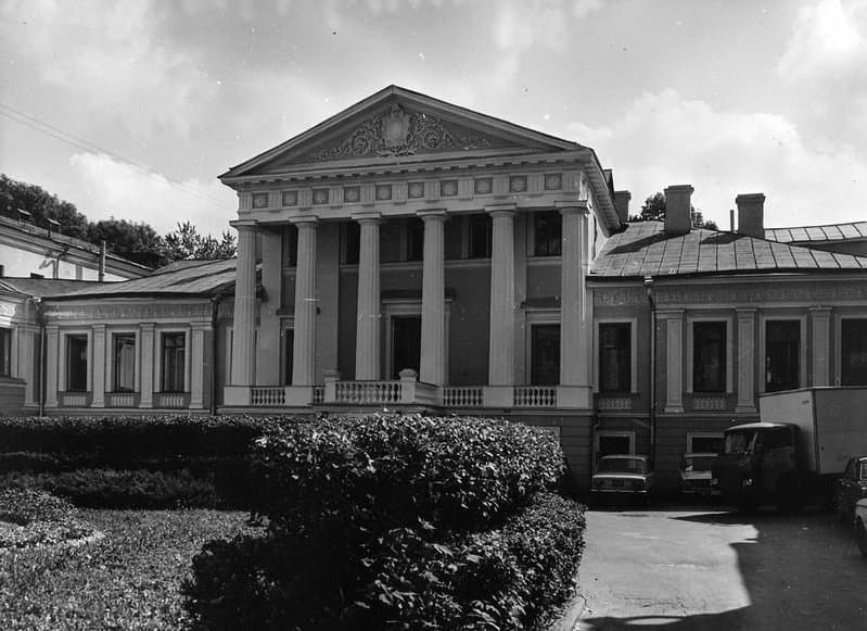 Ансамбль классической усадьбы на Малой Дмитровке формировался на протяжении второй половины XVIII и XIX веков. Главный дом расположен в глубине участка, а два симметричных флигеля формируют красную линию улицы. Флигели соединены с главным усадебным домом арочными переходами. Фасад здания украшен изящным дорическим портиком, обращённым в курдонёр (парадный двор усадьбы), отделённый от улицы оградой с воротами. Основой главного дома стали палаты середины XVIII века, которые в 1780-х годах были перестроены в классический усадебный дом, предположительно по проекту архитектора Николая Александровича Львова.