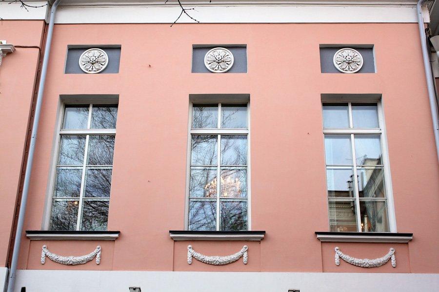 Эта усадьба на Петровке окончательно оформилась во второй половине XIX века, однако главный дом построен столетием раньше самим, как считают многие, М. Ф. Казаковым. Но здание проектировал не Матвей Федорович, а его ученик. В известные альбомы Казакова включены три ученических проекта, в том числе и этот, что является своего рода высочайшей оценкой мастера. Сам дом не был возведен с нуля, это перестройка-разворот более старого, стоявшего к Петровке торцом, отсюда и примечаемая асимметрия крыльев.