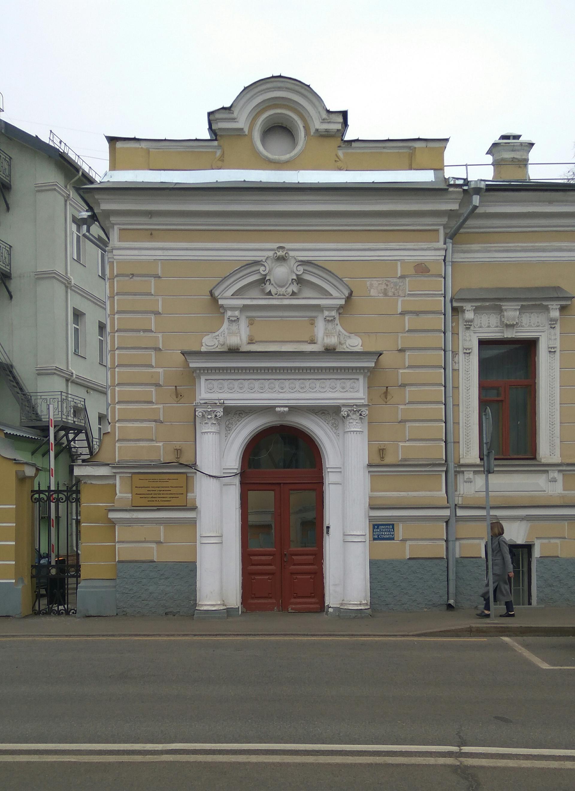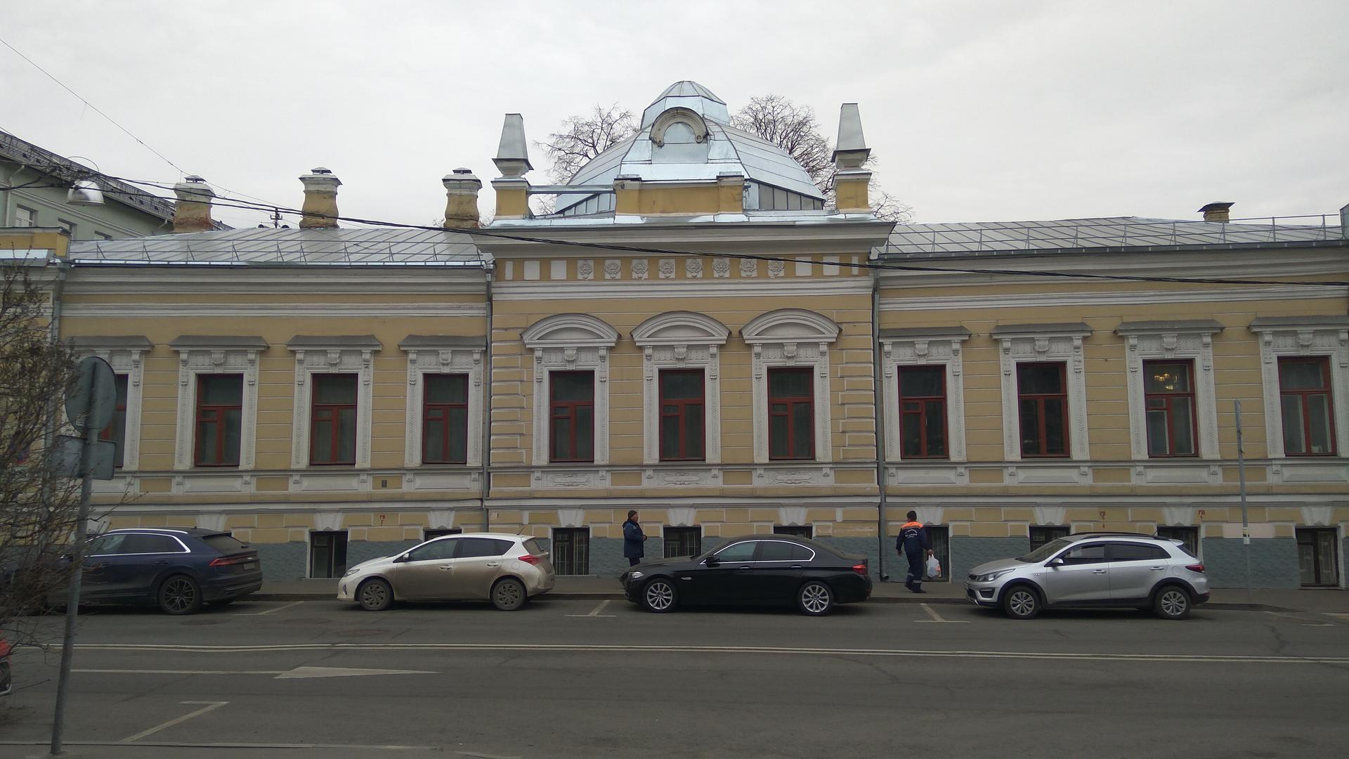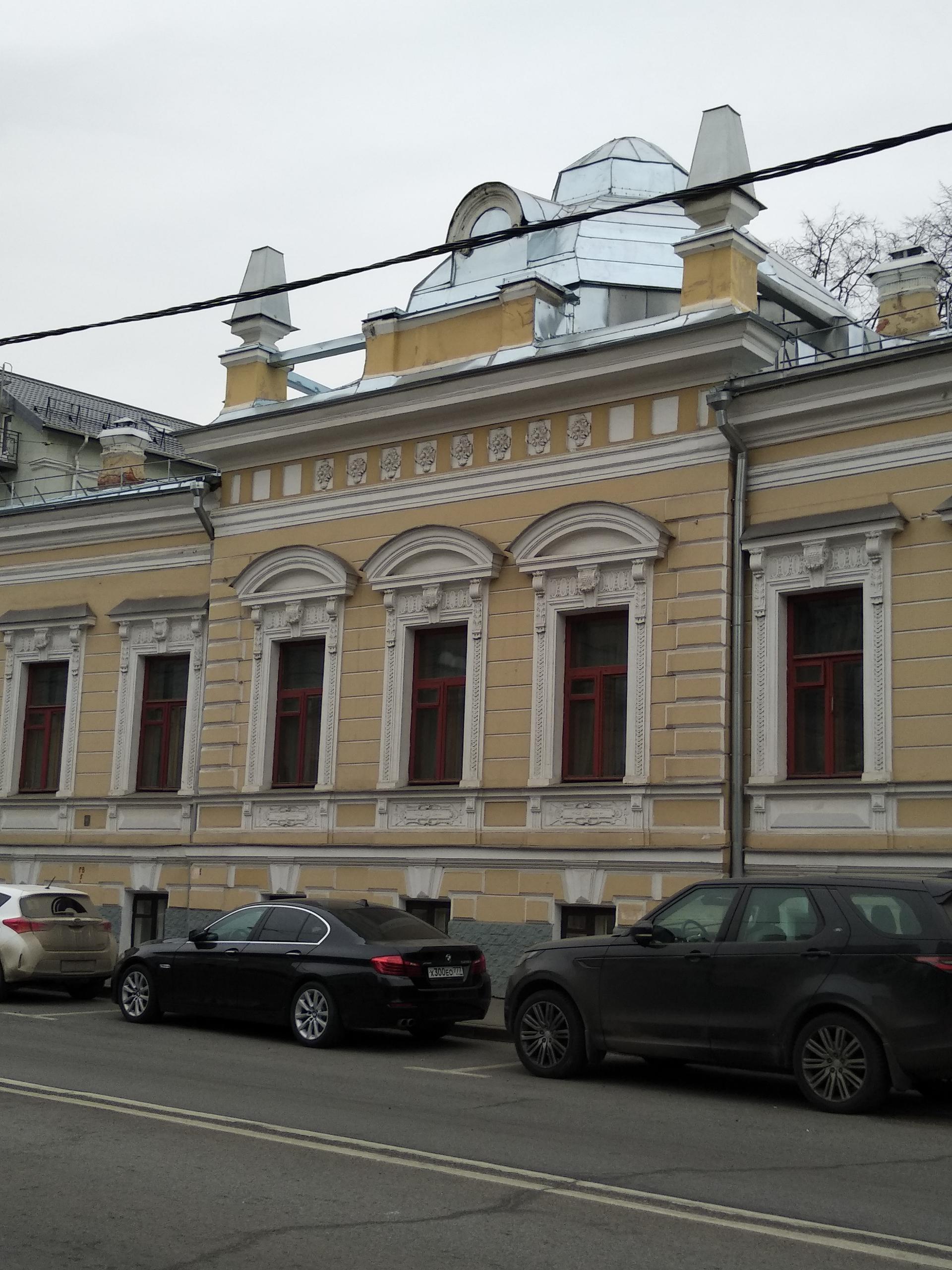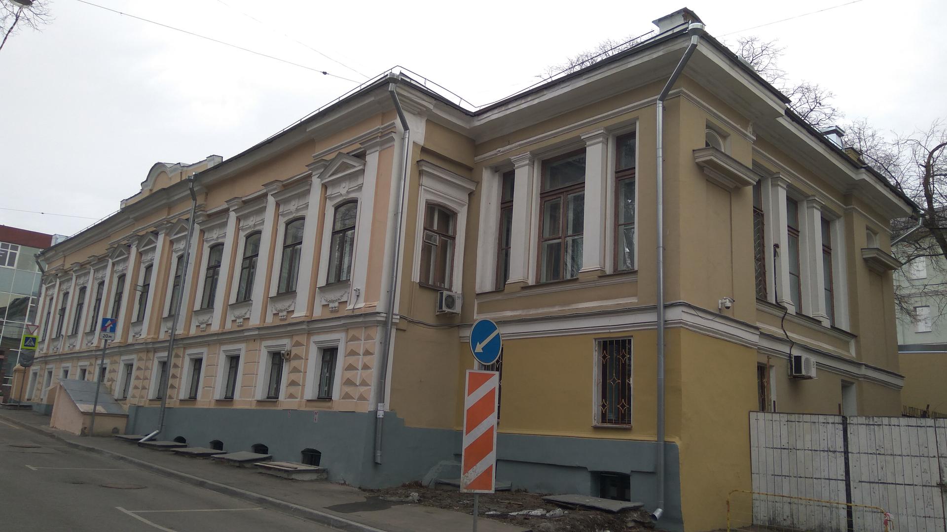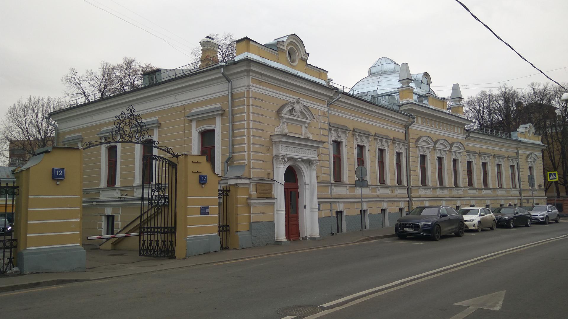 Красная линия особняка №12 по Воронцову полю повторяет поворот улицы, ведущей от Садового кольца к Бульварному. Эклектичный богато декорированный фасад слегка изогнут, а посередине украшен большим куполом. Центральный ризалит - архитектурный элемент, который выступает за линию фасада на всю высоту - выделен полукруглыми сандриками (декоративными карнизами) окон и фантастическим аттиком, также исполняющим декоративные функции, с толстыми пирамидками по краям. Два боковых ризалита отмечены небольшими полукруглыми аттиками.