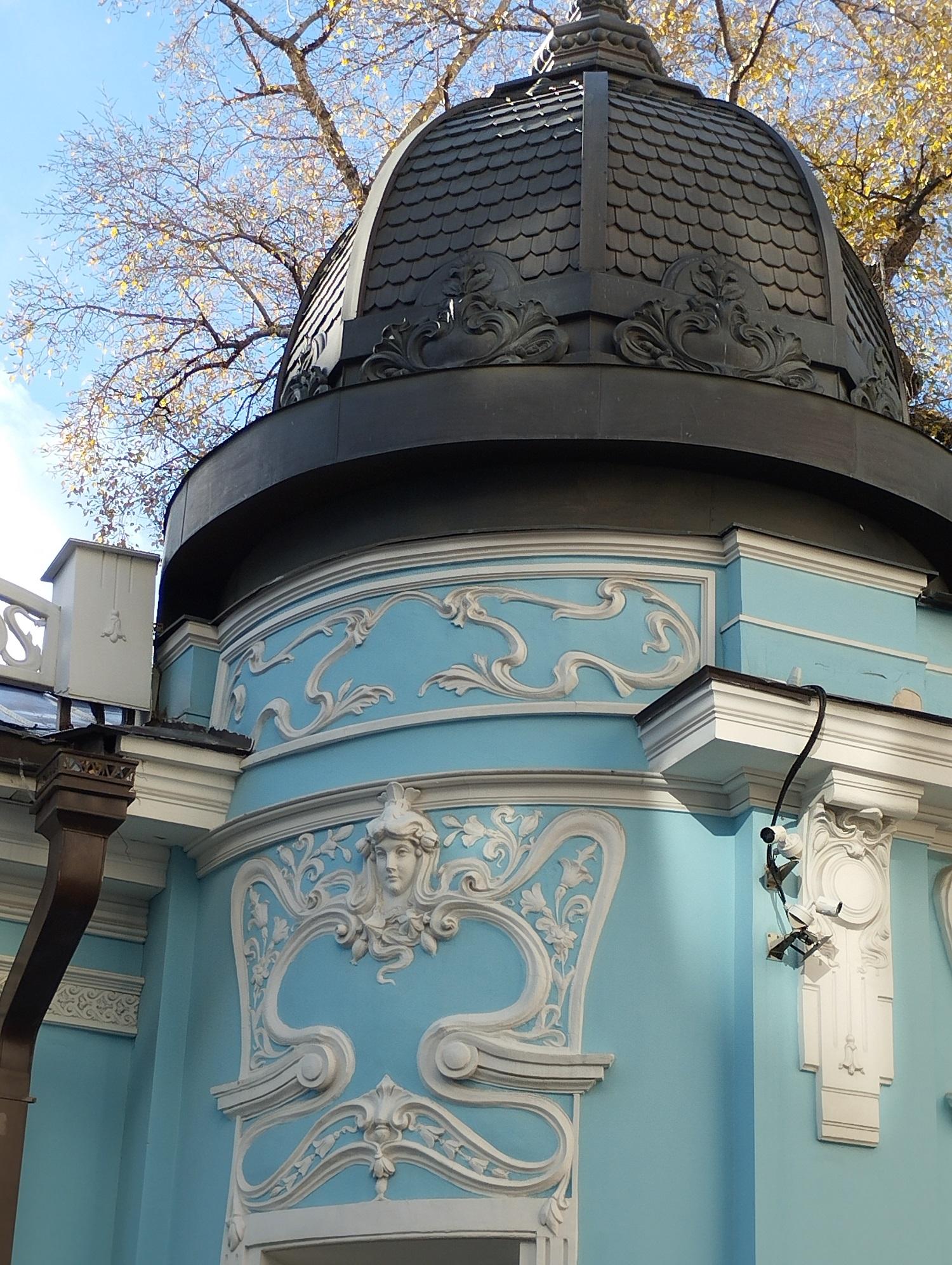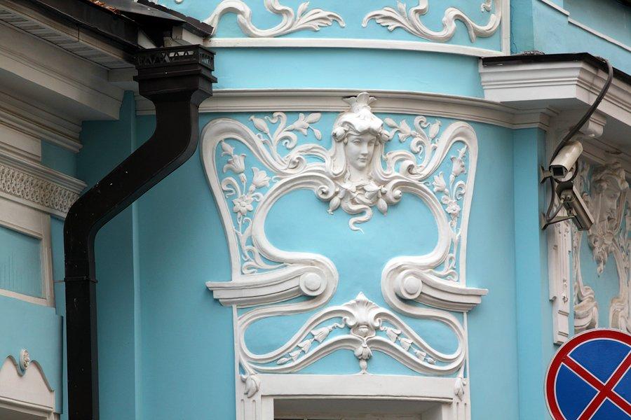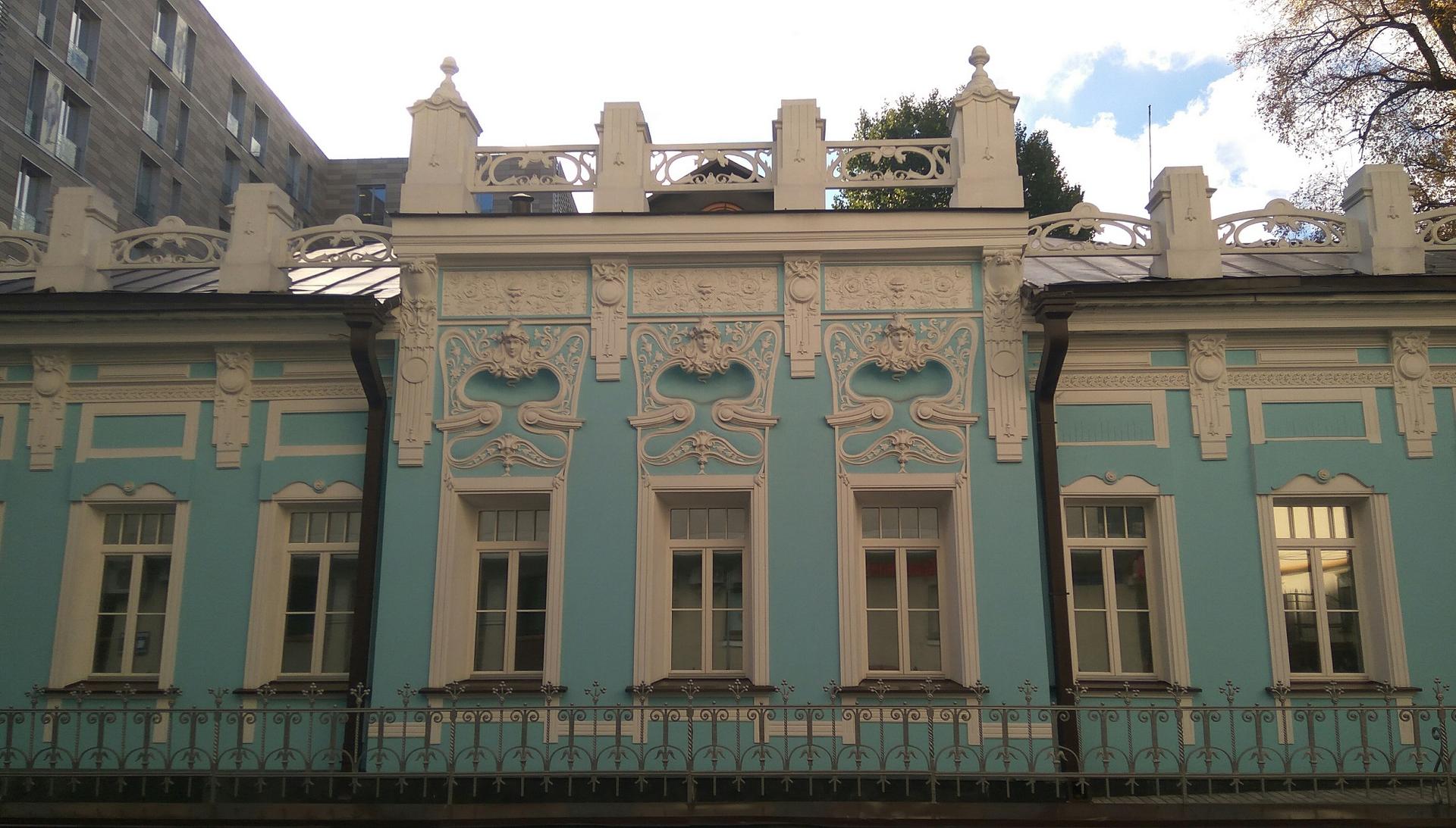 В хитросплетениях арбатских переулков есть множество настоящих архитектурных жемчужин. Одна из них — усадьба Н. П. Михайловой — В. Э. Тальгрен, расположенная в Малом Николопесковском переулке, 5. История этого дома уходит своими корнями в начало XIX века. Левая часть особняка более старая, она была построена в 1819 году в стиле ампир, а в 1901 году здание было перестроено архитекторами П. А. Заруцким и А. Е. Антоновым. Фасад сильно преобразился по веяниям модного в то время стиля «модерн», появилась рокайльная лепнина, волнообразные линии ниш над окнами и три женские головки. Горизонтальные профили над центральными окнами особняка выполнены в цветочном орнаменте с большими подсолнухами посередине композиции. Кроме изменения фасада, дом получил справа небольшую пристройку с угловой башенкой.