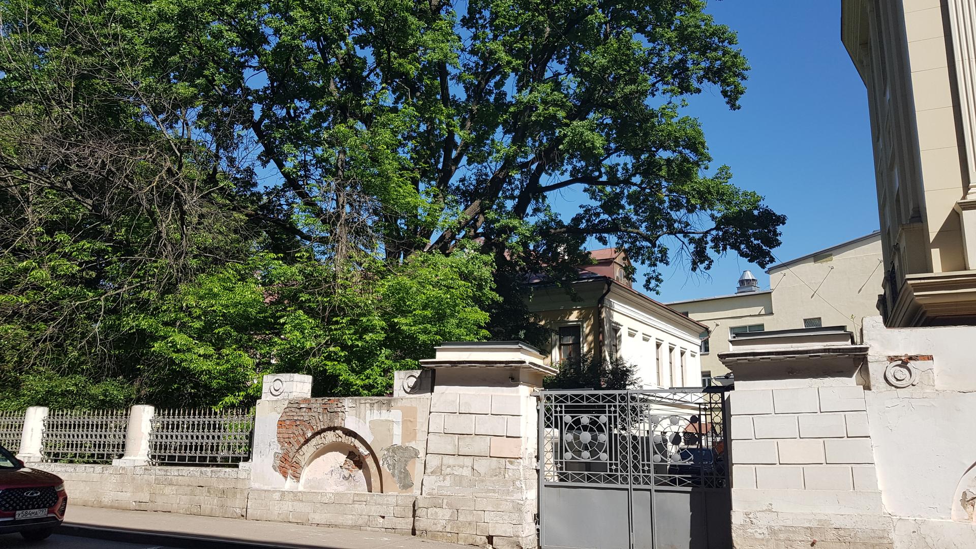 Дом в глубине двора за каменной оградой с цоколем, с массивными столбами ворот и кованой решеткой можно считать смысловым центром переулка. В 1714 г. этот участок земли, тогда еще в Казенном переулке, привлек внимание истопника Петра I Алексея Яковлевича Милютина. В 1690 г. Милютин стал придворным комнатным истопником при царе Иоанне Алексеевиче и царице Прасковье Федоровне и по наследству перешел к Петру I.