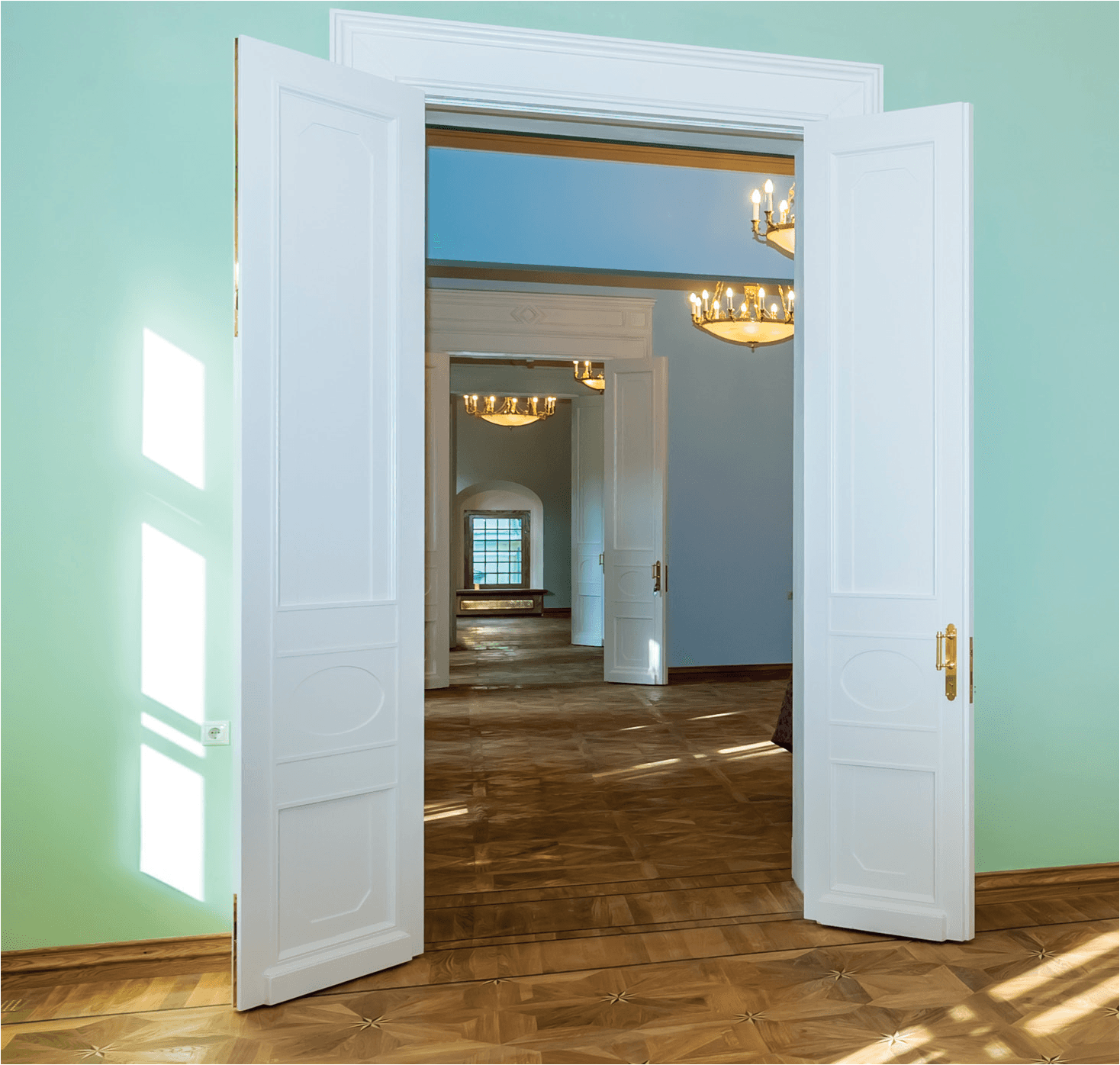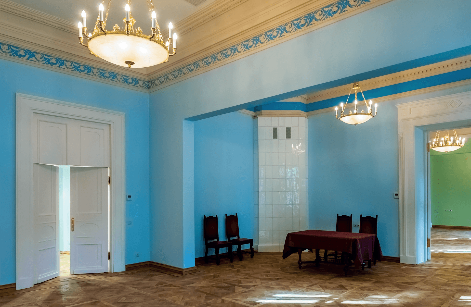В ходе реставрации также были проведены работы по восстановлению интерьеров. Были установлены новые дверные и оконные заполнения, реставрированы лестницы и парадные залы. Важным этапом стала реконструкция инженерных сетей, которые были полностью обновлены для соответствия современным стандартам, а также благоустройство территории усадьбы.