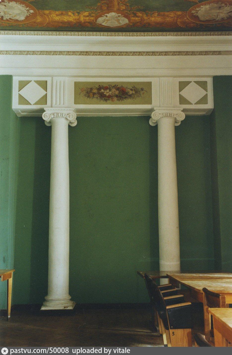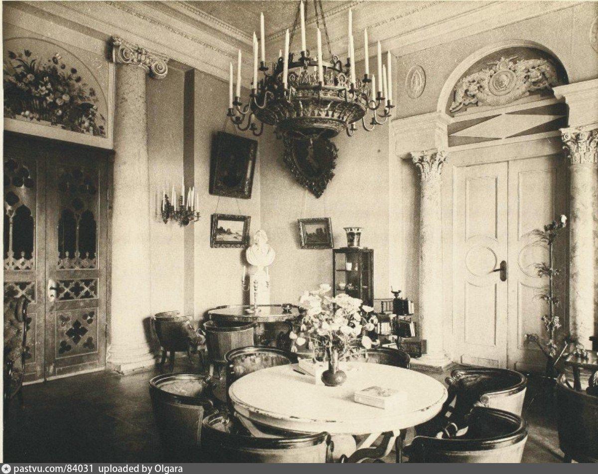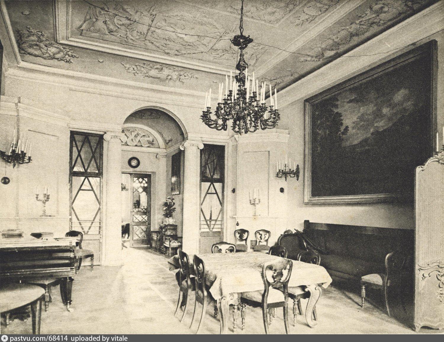 Внутреннее убранство главного дома было насыщено лепным декором и плафонными росписями. Круглый зал на втором этаже был украшен колоннами с коринфскими капителями и кессонированным куполом с большим световым отверстием в центре. Роспись плафонов 3-х залов первого этажа предположительно принадлежала художнику Д.Б. Скотти, плафон столовой был расписан в 20-е гг. XIX века.