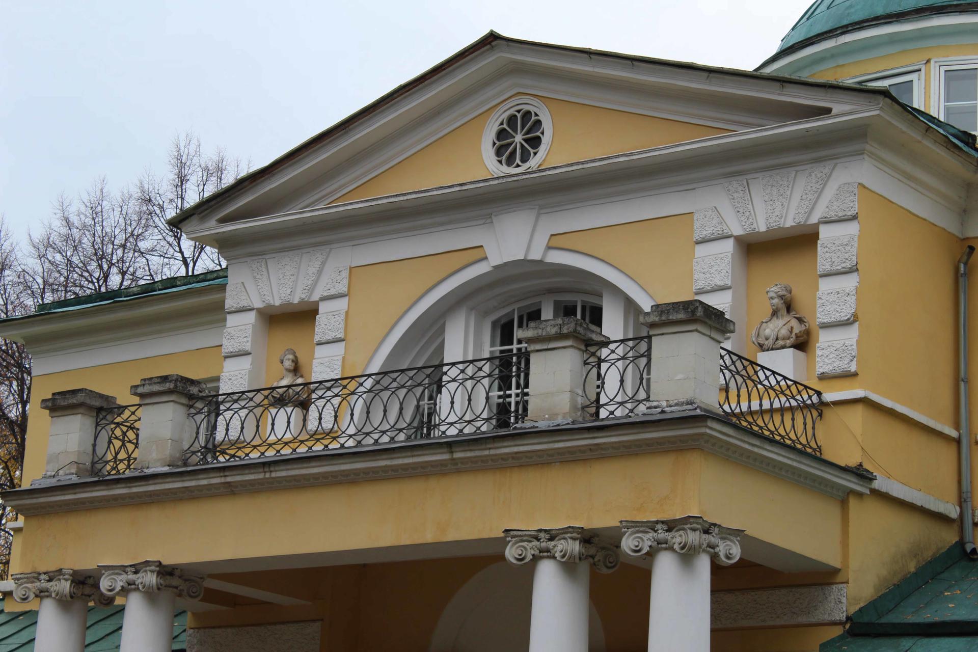 Именно Е.П. Строганова-Трубецкая в конце XVIII века выстроила на высоком берегу Сходни новый усадебный комплекс в стиле зрелого классицизма с композиционными приемами и мотивами палладианской архитектуры. Двухэтажный каменный квадратный в плане главный дом с куполом имел 4 входа. Главный и парковый входы выделены двумя парами колонн ионического ордера, поддерживающими балконы. Архитектурно-художественное решение фасадов характерно для загородной усадебной архитектуры начала XIX века: полуциркульные окна, террасы, украшенными балюстрадой с вазами, полуциркульные боковые ротонды с кариатидами. Перед главным входом стояла мраморная скульптура «Амур и Психея».