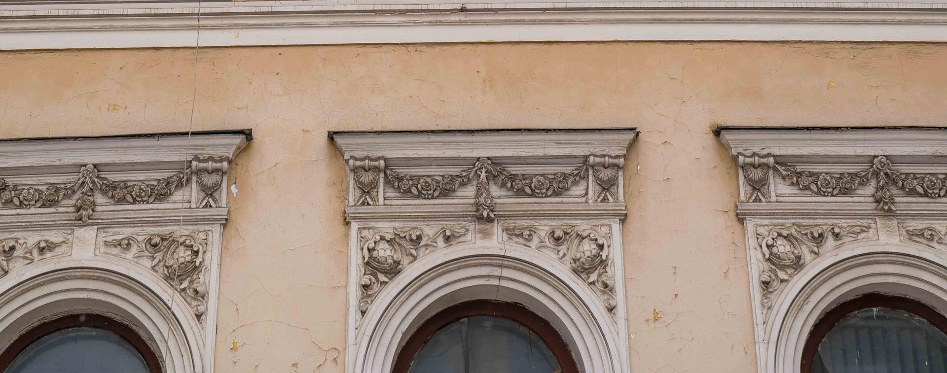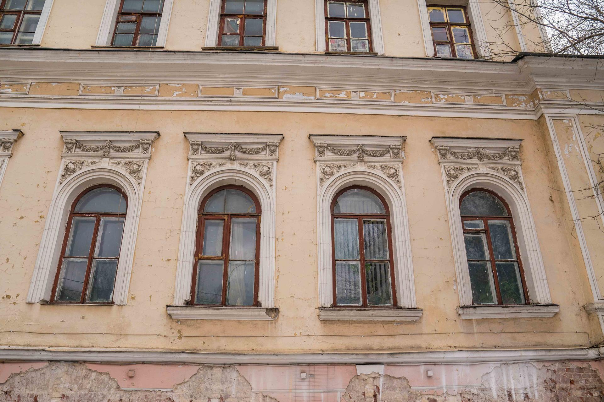 Усадьба изначально была выстроена в классическом стиле с элементами ампира (скорее всего, в середине XIX в.): руст на первом этаже, окна одинакового размера, под окнами второго этажа заметен декор в виде лавровых венков (элемент ампира). Сохранился мезонин на третьем этаже (надстройка над средней частью дома) с полукруглым фронтоном, оформленным круглым окном.