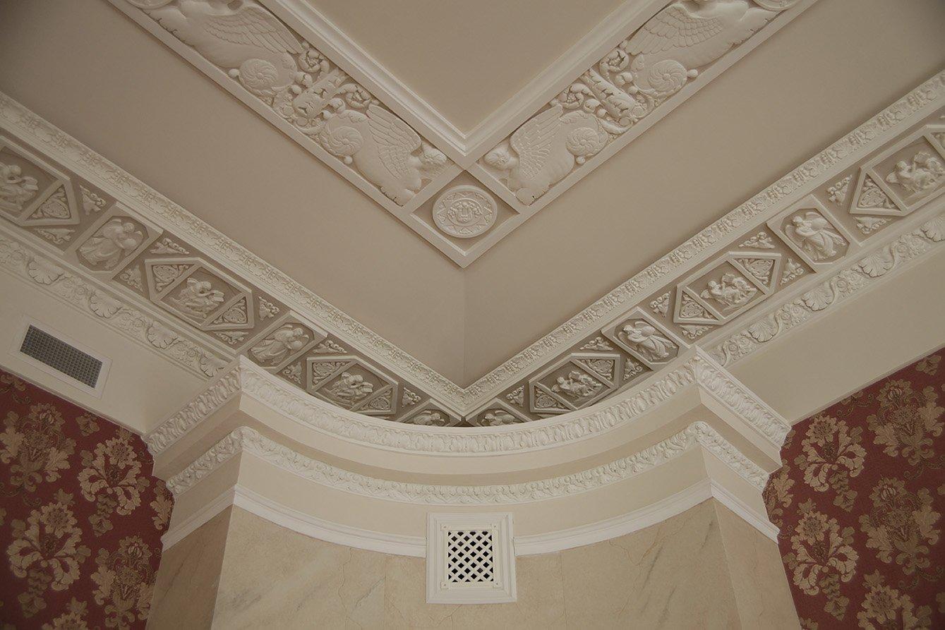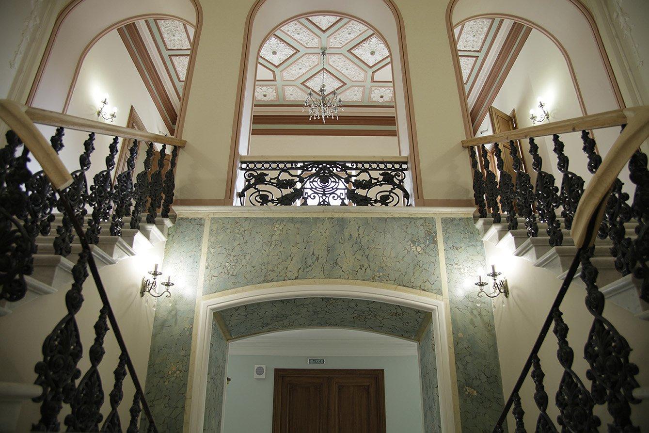 Одним из важных этапов работ стало восстановление парадной лестницы и анфилады с учётом исторических архитектурно-художественных элементов конца XVIII — конца XIX веков. Мраморные ступени, металлические балясины фигурного ограждения и панели привели в соответствие с историческим видом. Лепной декор потолка верхней лестничной площадки тщательно очистили и покрасили в оригинальный цвет.