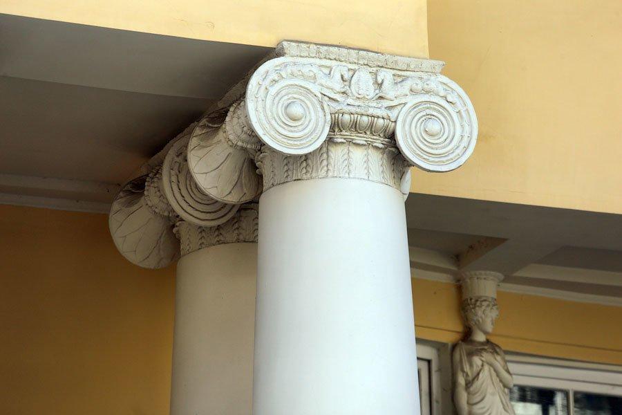 Композиция особняка Грибова ассиметрична, как в модерне. С правой стороны торжественный главный вход, ампирный портик, составленный из восьми парных ионических колонн. Над карнизом – полукруглое окно в широкой раме, покрытой классическим орнаментом, а еще выше – легкий треугольник фронтона. В левой части полукруглый объем, оформленный пилястрами, как в особняке Гедеонова на Манежной улице, еще одном ампирном московском шедевре. Великолепен и разнообразен лепной декор сооружения: барельефы на античные сюжеты на фасаде, орнаменты карнизов и сандриков окон. Строительство особняка осуществил в 1911 году гражданский инженер Алексей Николаевич Милюков. По отзывам искусствоведов, особняк получился необычайно изящным и привлекательным.