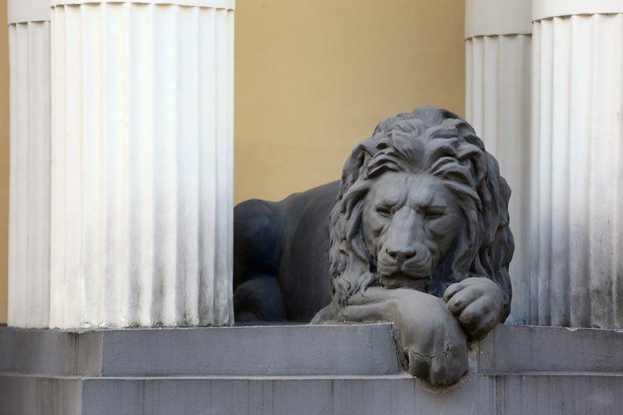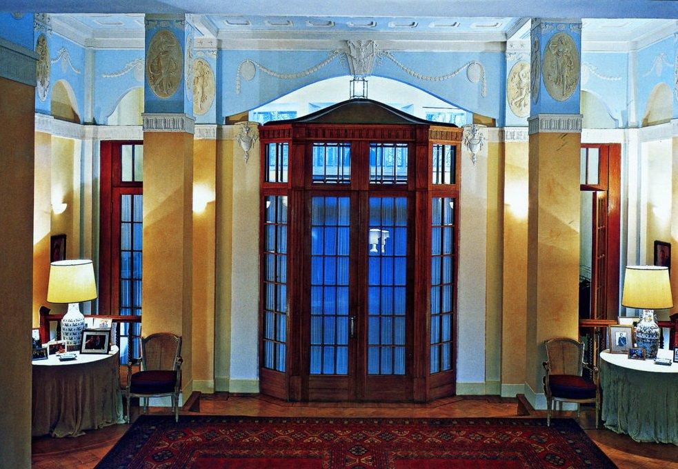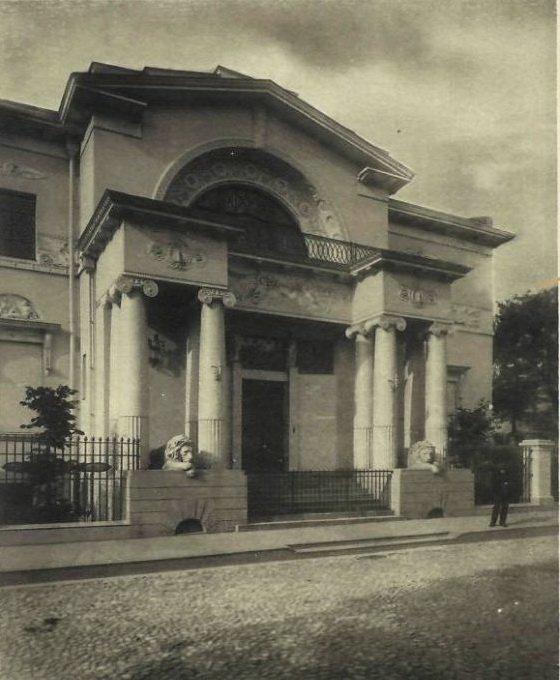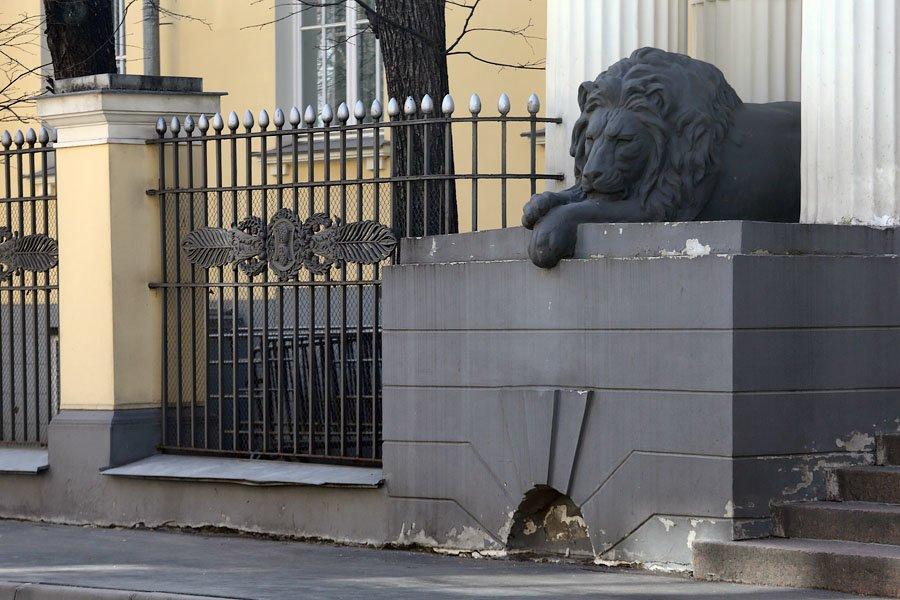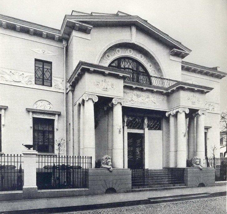 Элегантный особняк № 15, вход в который охраняют два добрых льва, уютно расположился в Хлебном переулке. Спроектирован он для молодого купца Владимира Назаровича Грибова в 1909 году Борисом Михайловичем Великовским. Он был последовательным приверженцем классики. Вдохновлял архитектора, очевидно, самый красивый московский ампирный особняк – князя Гагарина на Новинском бульваре, который построил великий московский архитектор Осип Бове после пожара Москвы 1812 года.