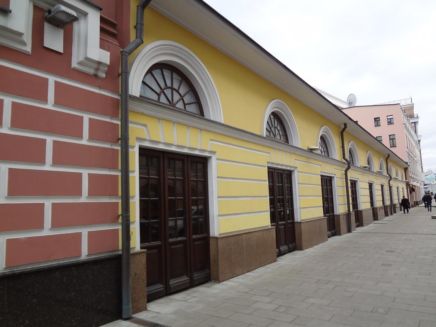 Но если присмотреться, можно в симметричном двухэтажном фасаде (третий этаж был скорое всего надстроен) увидеть городскую усадьбу камерного типа. Обойдя дом сзади, можно увидеть, что он почти прилегает к территории Московского подворья Соловецкого монастыря с храмом XVII в. Стало быть, при доме не должно было быть прилегающего сада.