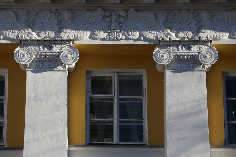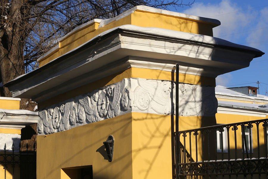 После пожара Москвы в 1812 году дом перестроили. Перестройка фасада была связана не только с необходимым ремонтом, но и с изменением архитектурной моды. Центр фасада был выделен пилястровым портиком с фронтоном. Гладкие стены, прорезанные проёмами окон, служат спокойным фоном для высококачественной лепнины. Она сосредоточена в верхних частях здания, во фронтоне, во фризе на антаблементе, между этажей. После перестройки усадьба стала одним из лучших образцов московского ампира. Обычно постройки этого стиля и такого высокого качества связывают с архитектором О. И. Бове. После 1812 года он возглавлял комиссию, утверждавшую фасады зданий в восстанавливающейся Москве.
