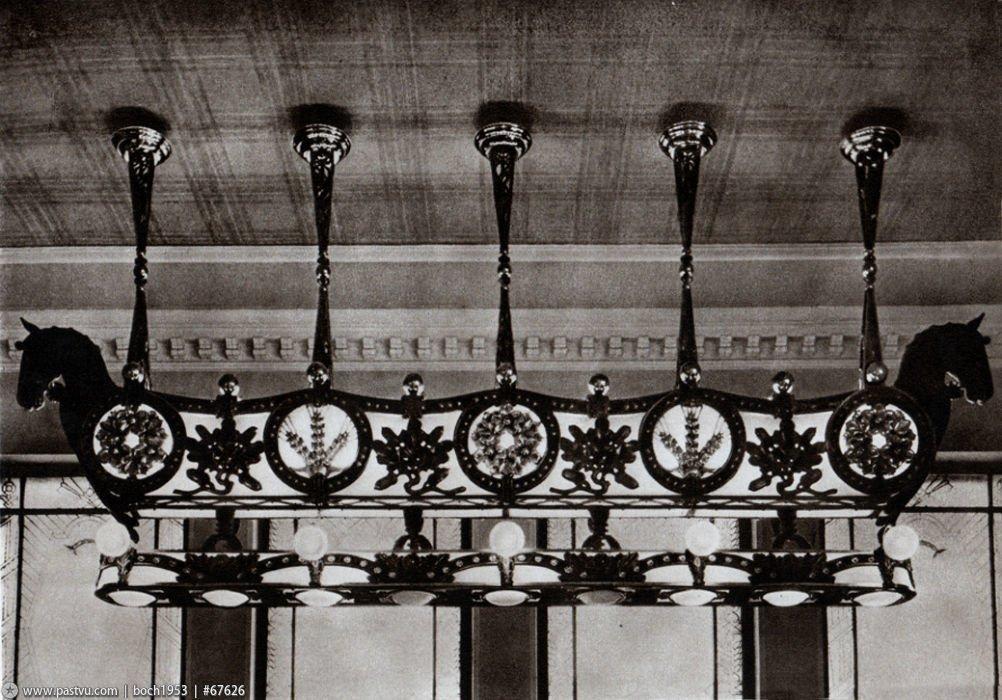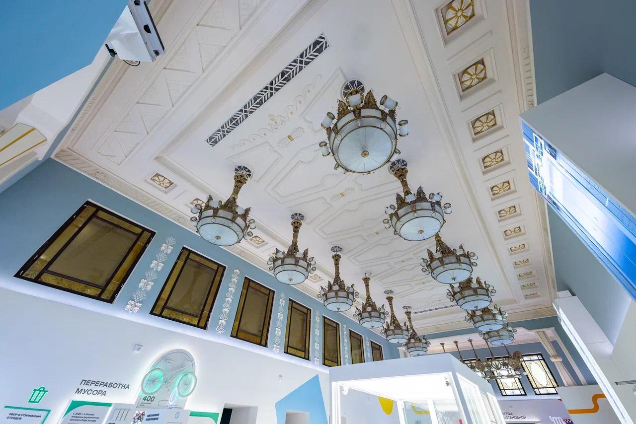 Особое внимание было уделено реставрации и воссозданию осветительных приборов. Хорошо сохранившиеся люстры-ромашки центральной части Вводного зала отреставрировали в мастерской. Люстры и бра выставочных залов воссоздали по фотографиям и чертежам рабочей документации.