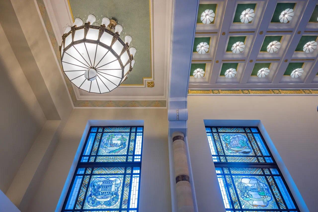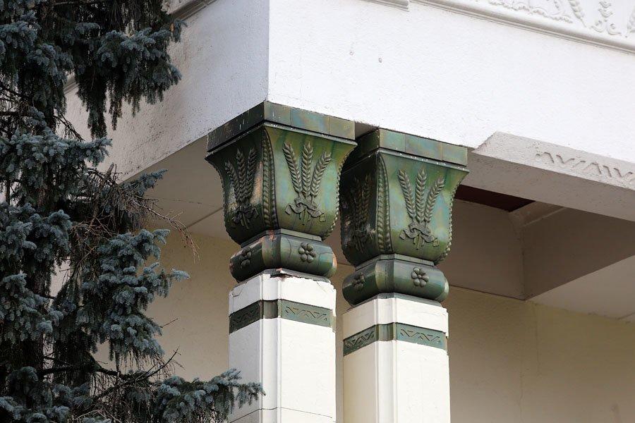 Самым сложным и интересным этапом реставрации стало воссоздание 17 полихромных витражей, изначально украшавших главный фасад павильона. Они были утрачены в 1960-х годах, однако позже девять из них обнаружили на территории Латвийской республики. Благодаря архивным документам и фотографиям найденных произведений реставраторам удалось воссоздать уникальные витражи из цветных стёкол разной фактуры, покрытых живописью.