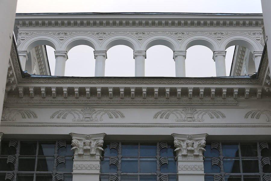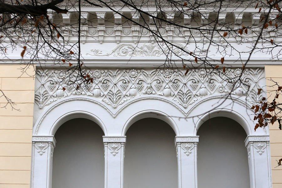 В оформлении боковых фасадов здания использованы причудливые вазы, а к дворовому фасаду примыкает прозрачная веранда-галерея, также типичная для ар-деко. Сейчас здесь показывают живых тропических бабочек.