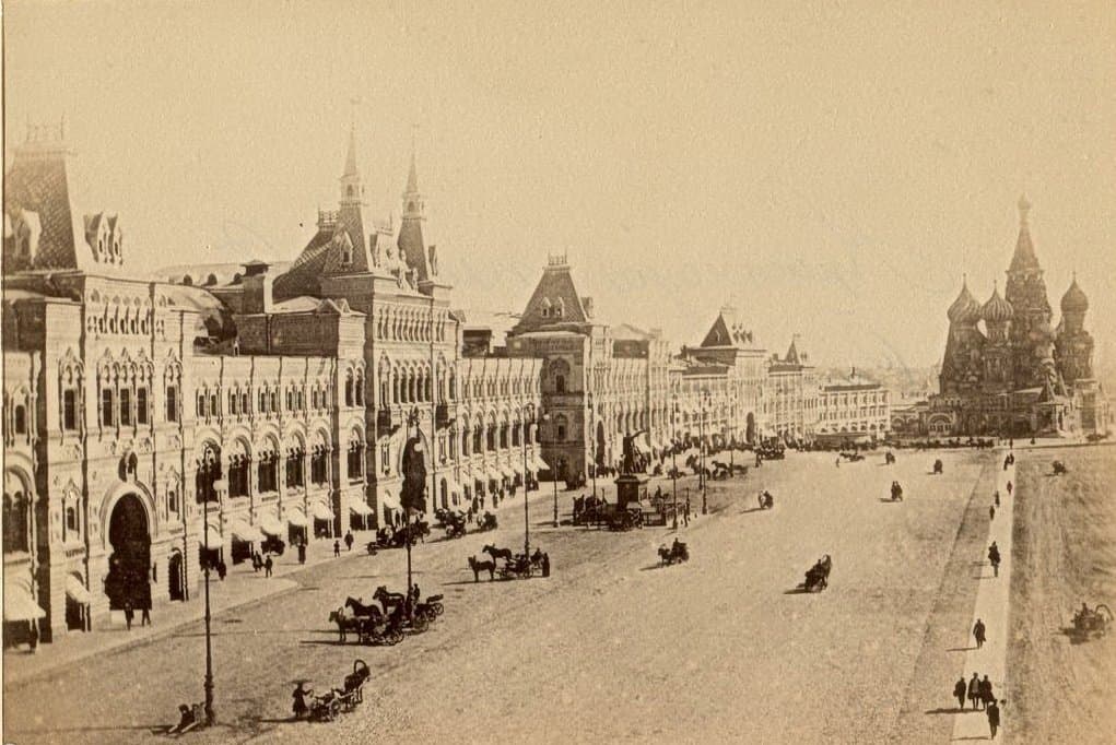 Торговля на территории современного ГУМа ведется с XV в. Историческое название комплекса — Верхние торговые ряды. Изначально Никольская, Ильинка и Варварка делили всю торговлю напротив Кремля на Верхние, Средние и Нижние ряды. Каждый блок внутри делился на ряды, по характеру товаров: Колокольный, Кафтанный и пр. В XV–XVI вв. торговля шла в деревянных лавках, при Борисе Годунове в 1596–1598 гг. появились и каменные постройки, но, несмотря на частые пожары, замена дерева камнем шла очень медленно. В 1780-х гг. передняя часть Верхних рядов со стороны Красной площади получила второй этаж и арочный фасад с десятиколонным портиком. Проект полной перестройки комплекса был разработан Джакомо Кваренги, но до конца так и не реализован.