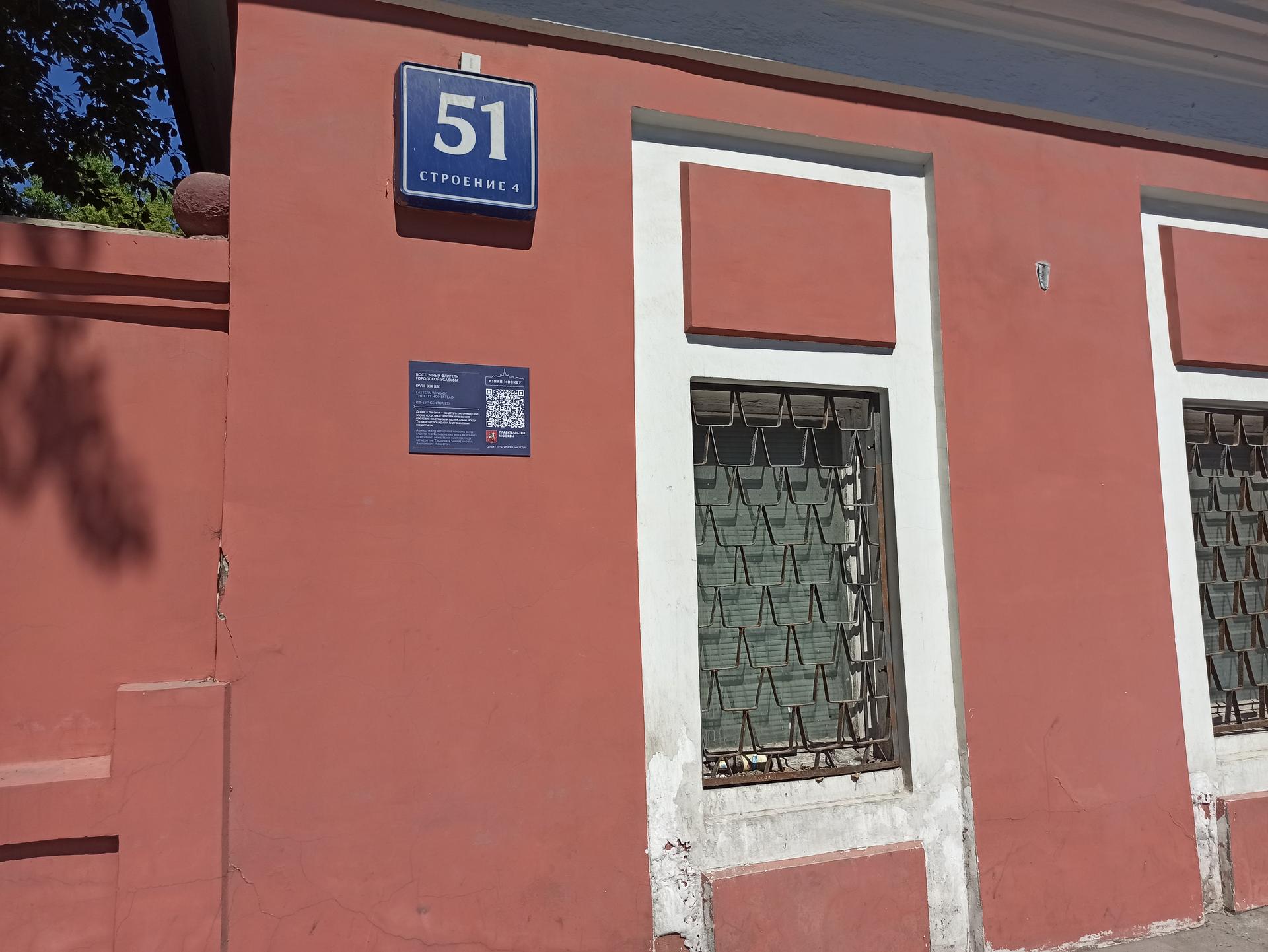 Вслед за главным домом усадьбы Рогожиной в конце 1780 – начале 1790 гг. в центральной части владения построили восточный (хозяйственный) флигель. Впоследствии, после разделения усадьбы в 1830-е годы, он стал отмечать восточную границу нынешнего участка № 53 по Николоямской улице. Скорее всего, флигель был одноэтажным и деревянным, использовался под амбар (как и западный флигель усадьбы) и каретный сарай. В 1790-х гг. здание было надстроено вторым жилым этажом. После московского пожара 1812 года флигель восстановили из кирпича, надстроив над ним третий этаж. Но это не уберегло его от нового пожара – уже в 1834 году. Правда, тогда в огне уцелели подвальные своды. Они сохранились до наших дней; исследователи признают особую историко-архитектурную ценность этих одностолпных сводчатых помещений под флигелем, в северной и южной части здания.
