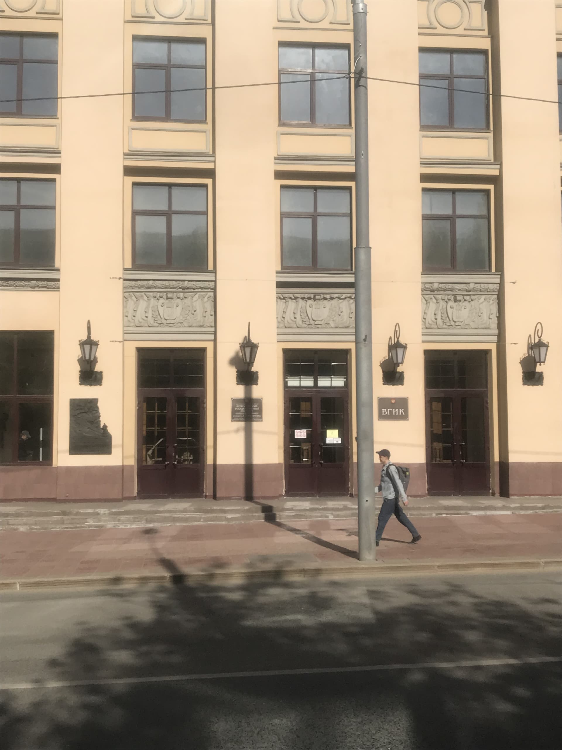 В 1930—1938 годах институт занимал здание бывшего ресторана «Яр» на Ленинградском проспекте. Затем некоторое время размещался в здании, где сейчас расположена киностудия имени М. Горького. Проектирование здания ВГИКа началось в сентябре 1938 года, аудитории и другие помещения института были рассчитаны на 750 слушателей. Для постройки выделен участок на площадке строительства студии кинохроники (Ростокино). Корпус института предполагался как единый архитектурный комплекс со зданием новой студии. К началу 1950-х годов было построено правое крыло нынешнего здания по улице Вильгельма Пика, дом 3, а к 1955 году ВГИК окончательно перебрался в учебные аудитории нового здания. Павильоны для съёмок ещё несколько лет оставались в здании киностудии имени М. Горького; студенты жили в общежитиях, расположенных в разных районах города; в 1978 году по улице Бориса Галушкина, дом 7, было построено 16-этажное здание нового общежития.