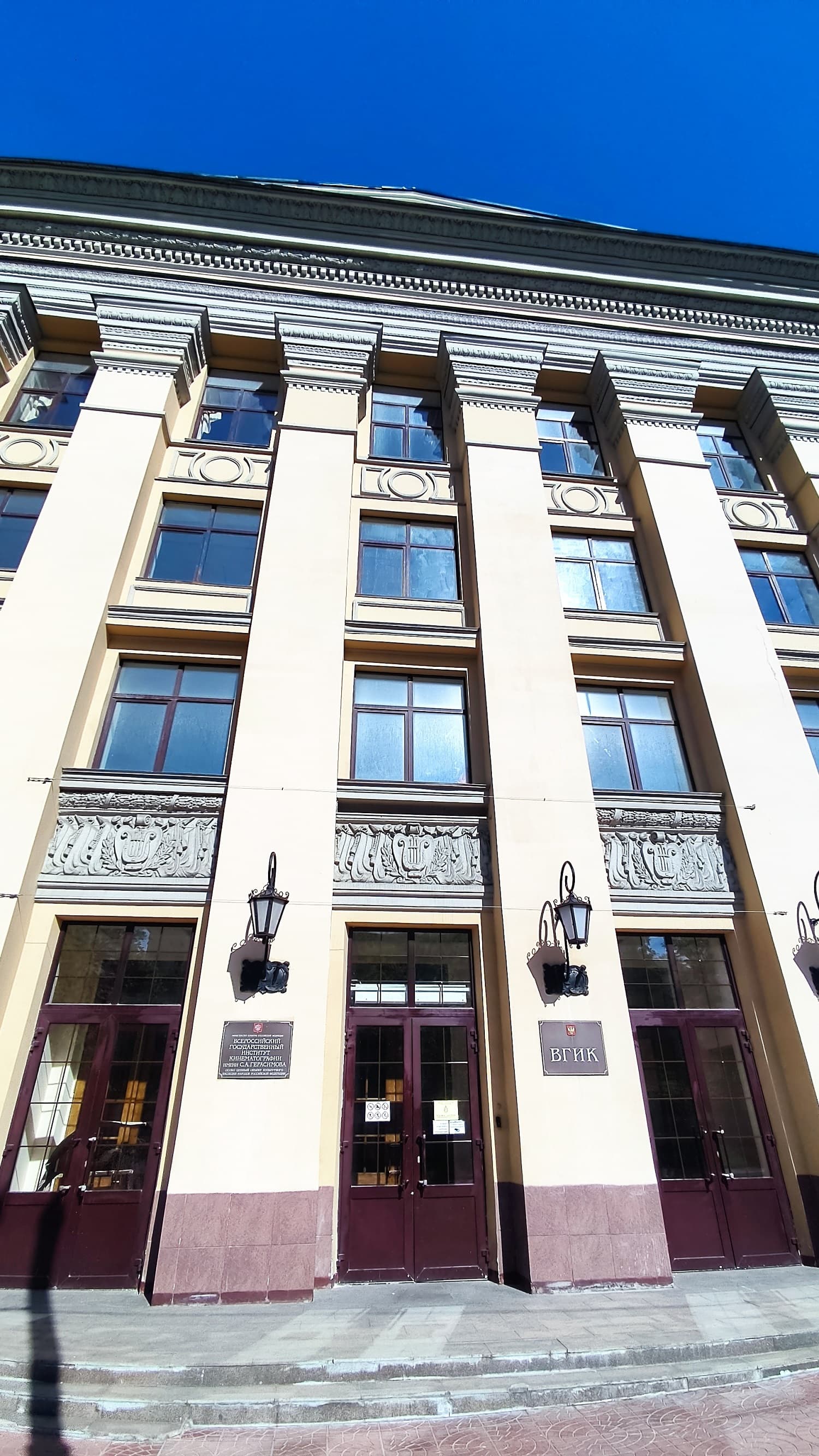 В 1930—1938 годах институт занимал здание бывшего ресторана «Яр» на Ленинградском проспекте. Затем некоторое время размещался в здании, где сейчас расположена киностудия имени М. Горького. Проектирование здания ВГИКа началось в сентябре 1938 года, аудитории и другие помещения института были рассчитаны на 750 слушателей. Для постройки выделен участок на площадке строительства студии кинохроники (Ростокино). Корпус института предполагался как единый архитектурный комплекс со зданием новой студии. К началу 1950-х годов было построено правое крыло нынешнего здания по улице Вильгельма Пика, дом 3, а к 1955 году ВГИК окончательно перебрался в учебные аудитории нового здания. Павильоны для съёмок ещё несколько лет оставались в здании киностудии имени М. Горького; студенты жили в общежитиях, расположенных в разных районах города; в 1978 году по улице Бориса Галушкина, дом 7, было построено 16-этажное здание нового общежития.
