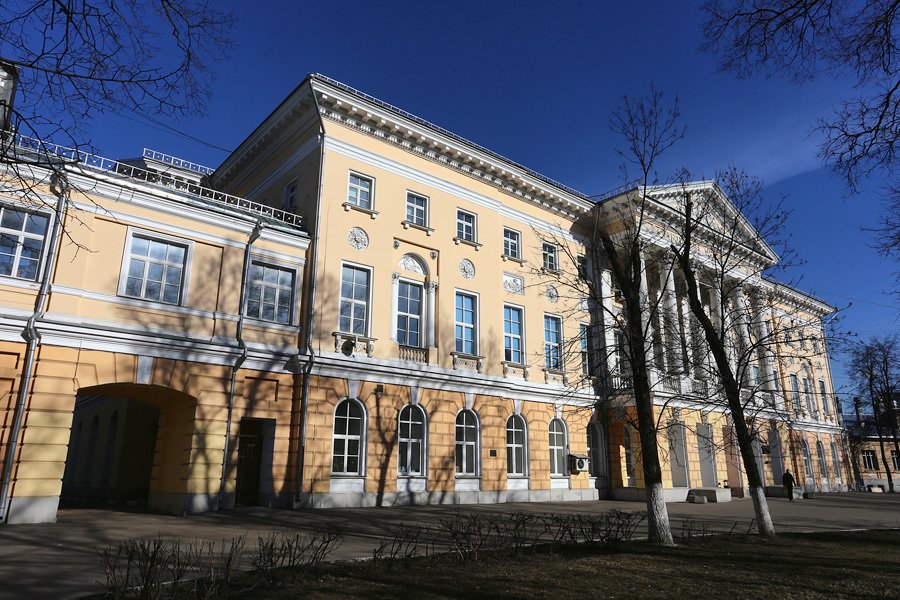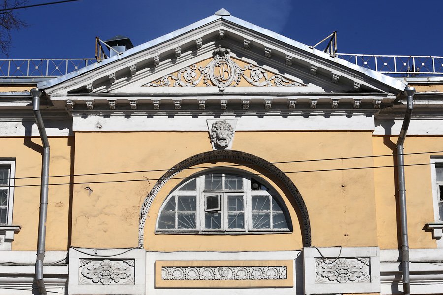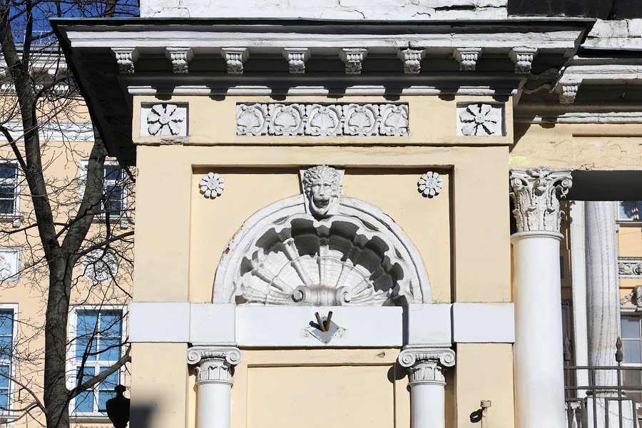 В главном корпусе был обнаружен ампирный портик XVIII века с колоннадой. Стены убрали, а найденный оселковый мрамор, лепной декор и белокаменный верх портика восстановили.