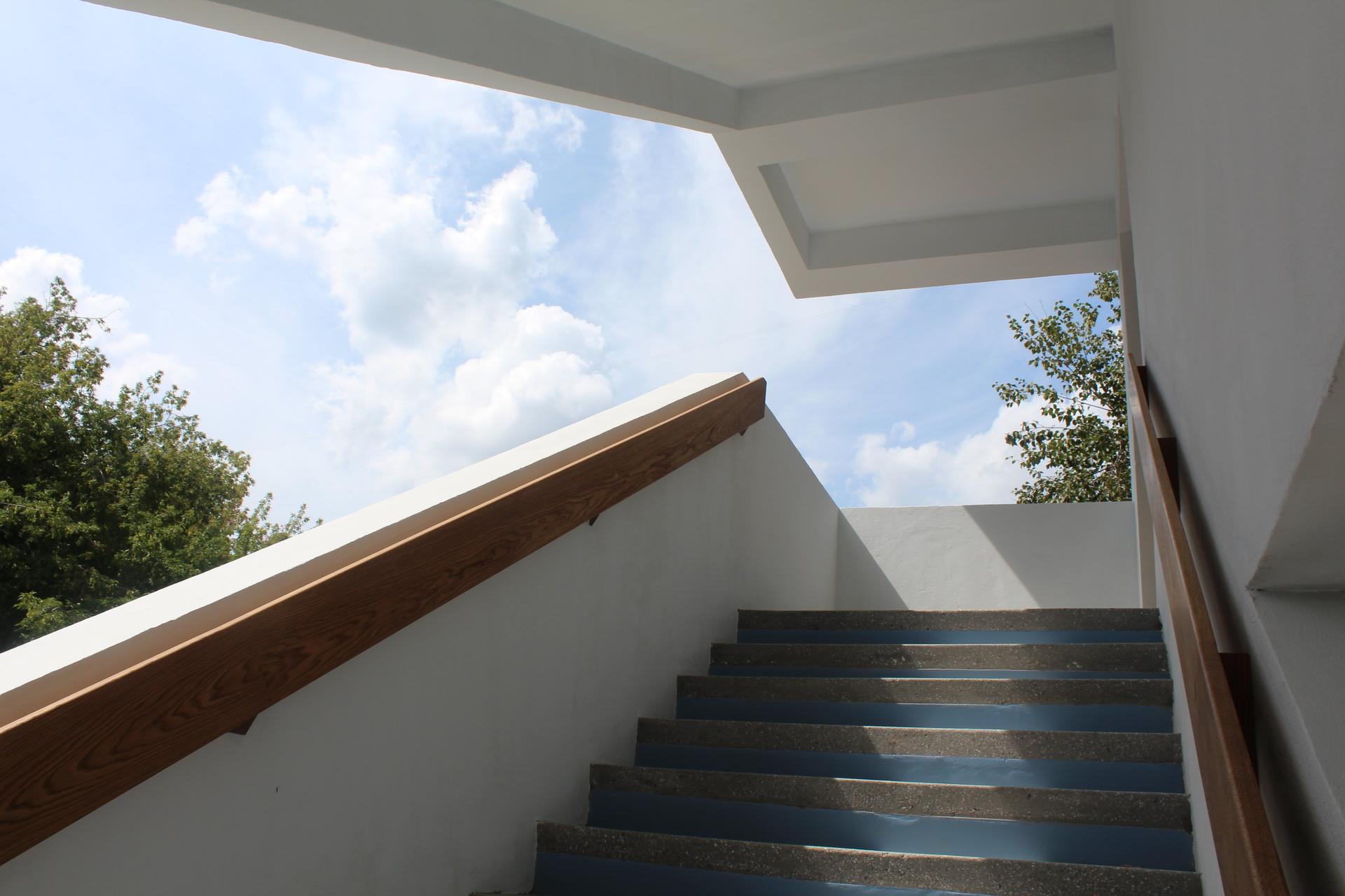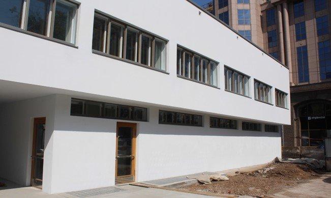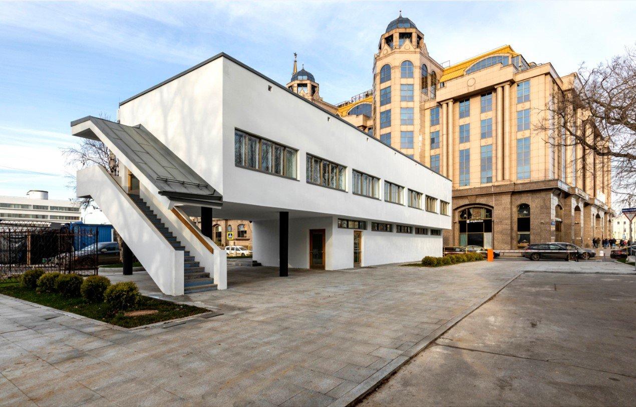 Особое внимание было уделено восстановлению фасадов здания. Их очистили от старого штукатурного слоя, заменили разрушившиеся блоки и восстановили первоначальное колористическое решение – белый цвет, характерный для всего ансамбля Дома Наркомфина. Это позволило вернуть зданию его изначальный, лаконичный и выразительный облик, типичный для архитектуры конструктивизма.