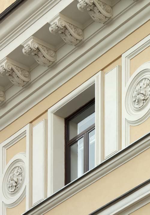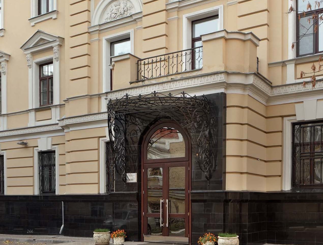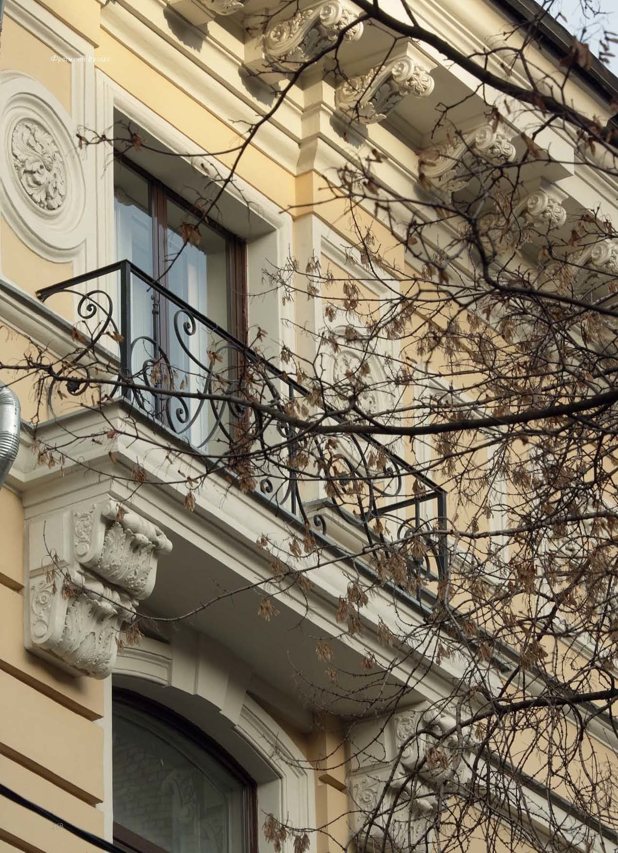 Общежитие состояло из двух корпусов (в настоящее время дома 10 и 12), расположенных под углом друг к другу, но второй был построен несколько позже, в 1903 г., архитектором Р. И. Клейном, который, в свою очередь, принимал участие в возведении отдельных частей комплекса университетских клиник на Девичьем поле. Оформление фасадов двух корпусов хотя и отличается в деталях, в целом довольно схоже. Парадный вход современного дома 12 акцентирован ризалитом и рустованными пилястрами. С южного и восточного фасадов расположены балконы с металлическим ограждением. Окна с профилированными наличниками завершены сандриками различной конфигурации и рисунка. Здание опоясывает профилированный венчающий карниз с поясом кронштейнов. Фасад украшают лепные детали в виде розеток и скульптурных композиций.