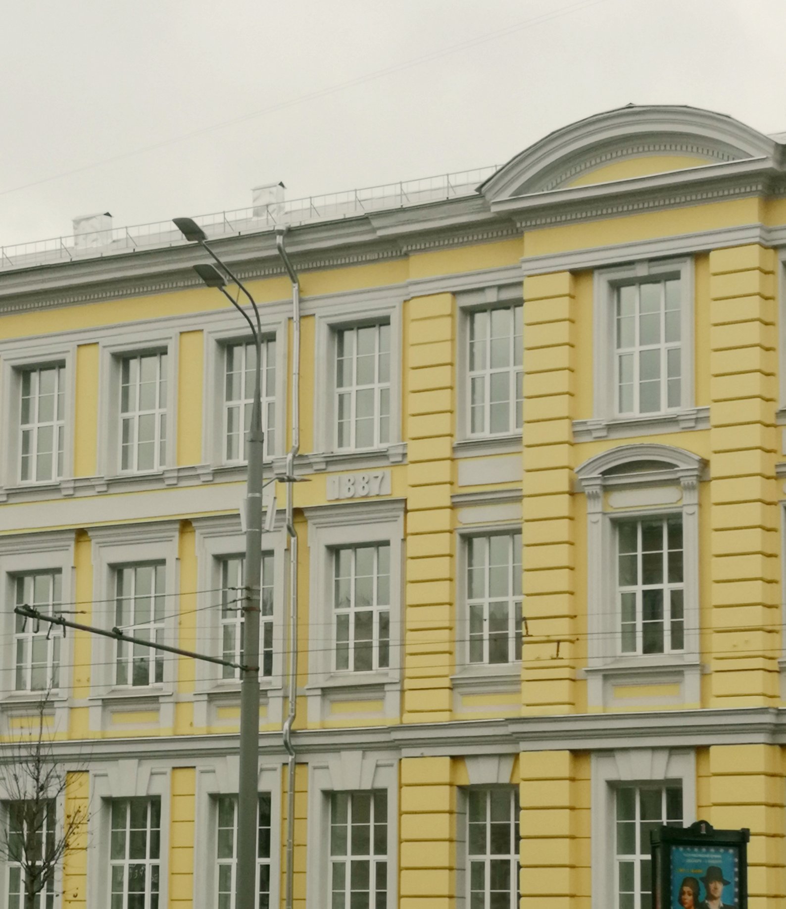 В центральной части главного фасада исторически была надпись с датой постройки и названием учебного заведения. До наших дней сохранилась лишь дата – 1887 г.